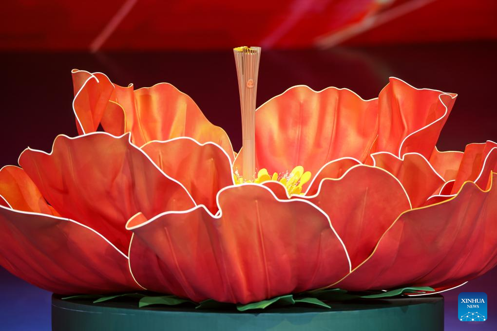 Photo taken on Aug. 2, 2025 shows the flame cauldron for China's 15th National Games and 12th National Paralympic Games, along with the 9th National Special Olympics Games in Shenzhen, south China's Guangdong Province. (Xinhua/Liang Xu)
