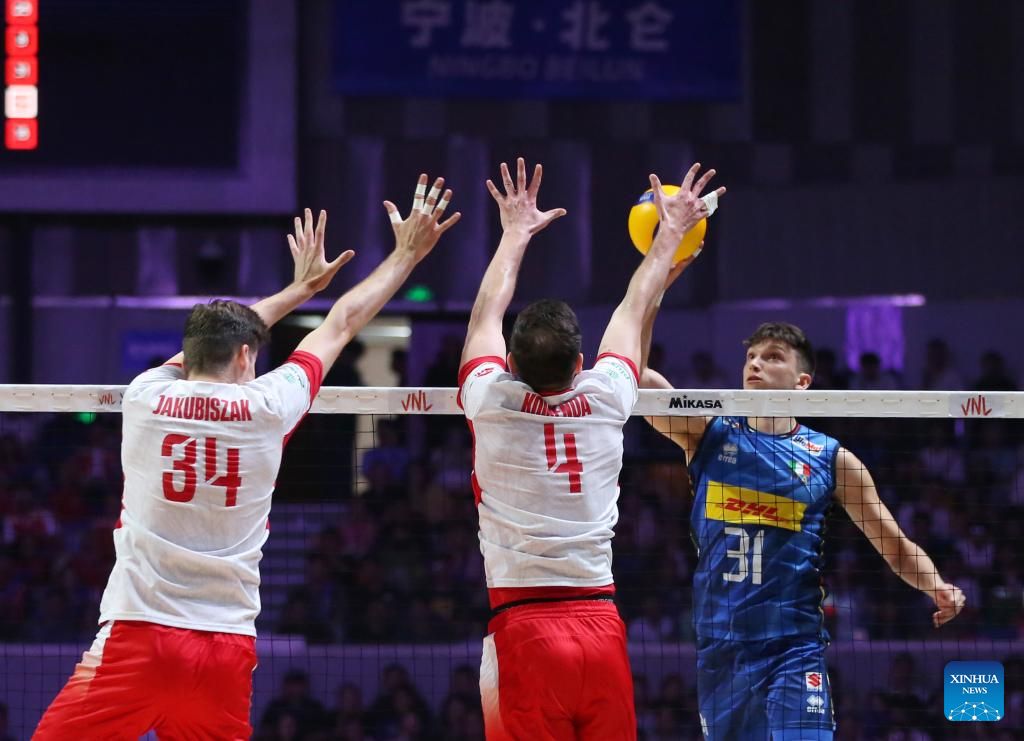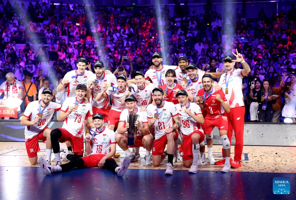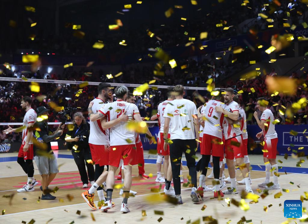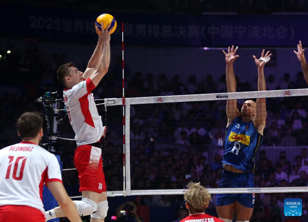 NINGBO, China, Aug. 3 (Xinhua) -- World No. 1 Poland defeated Italy in straight sets to win the 2025 FIVB Men's Volleyball Nations League (VNL) Finals on Sunday, securing its second VNL trophy.