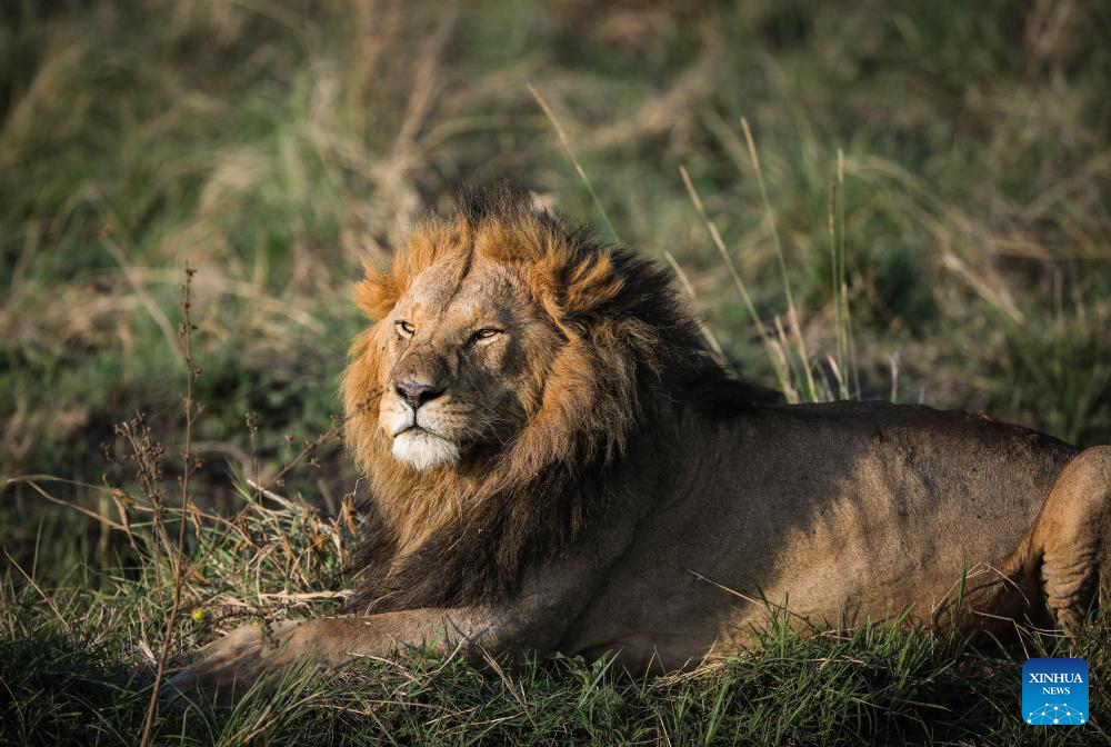 This photo taken on July 30, 2025 shows a lion in the Masai Mara National Reserve in Kenya. (Xinhua/Han Xu)
