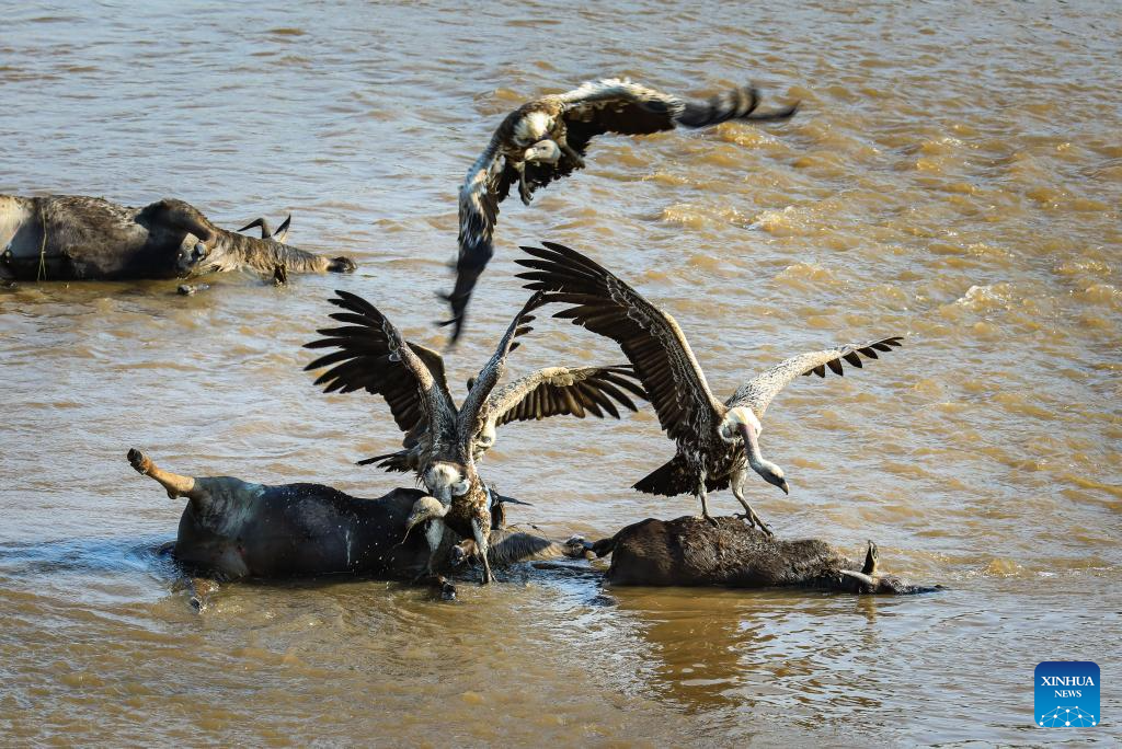 Vultures feed on a carcass in the Masai Mara National Reserve in Kenya, on July 30, 2025. (Xinhua/Han Xu)