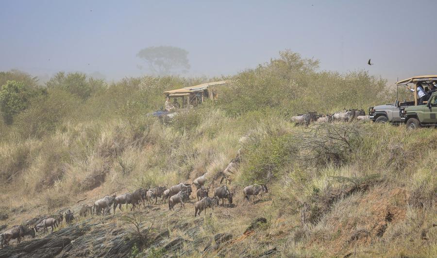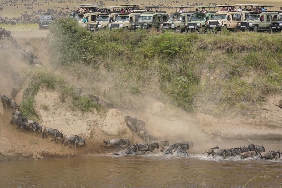 "The challenge we have in Kenya and Tanzania, in terms of wildebeest migration, is that whenever wildebeests cross the river, many vehicles filled with tourists gather to witness this dramatic moment," Alfred Bett, a tourism warden who has been working at Masai Mara for 20 years, told Xinhua in a recent interview.