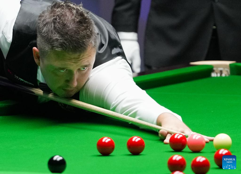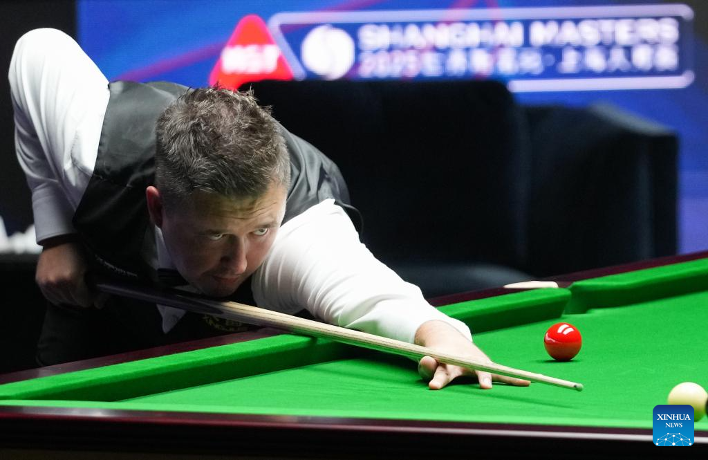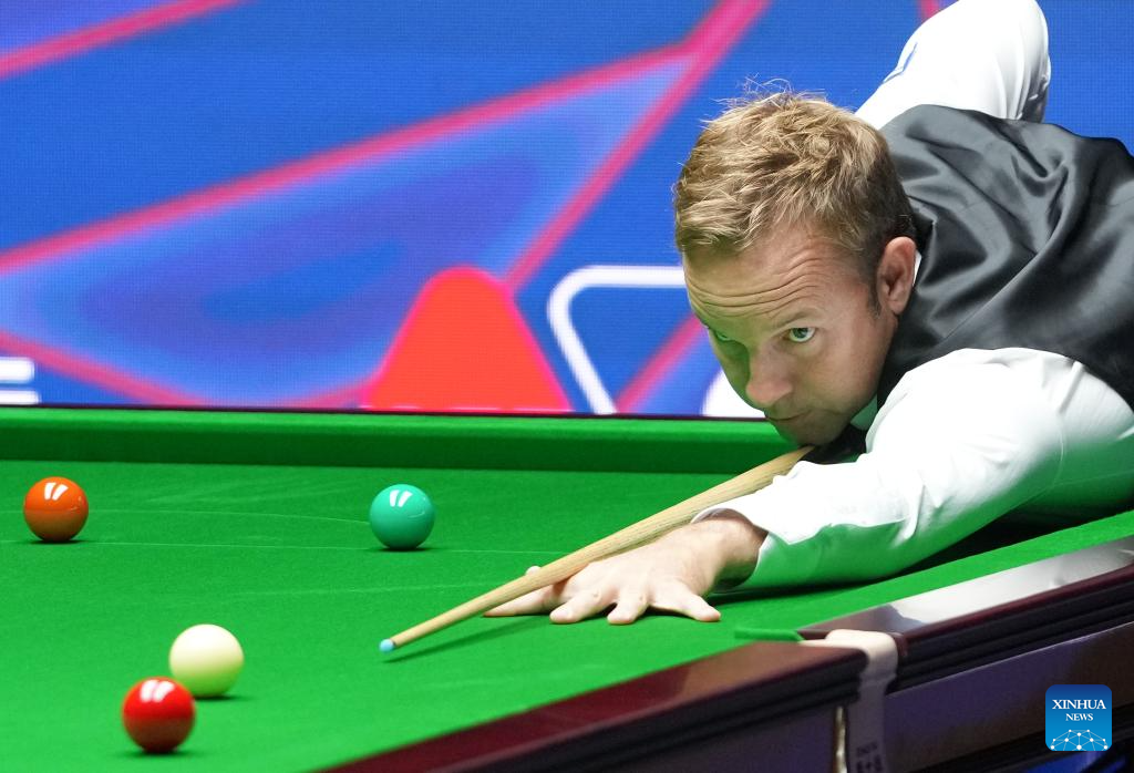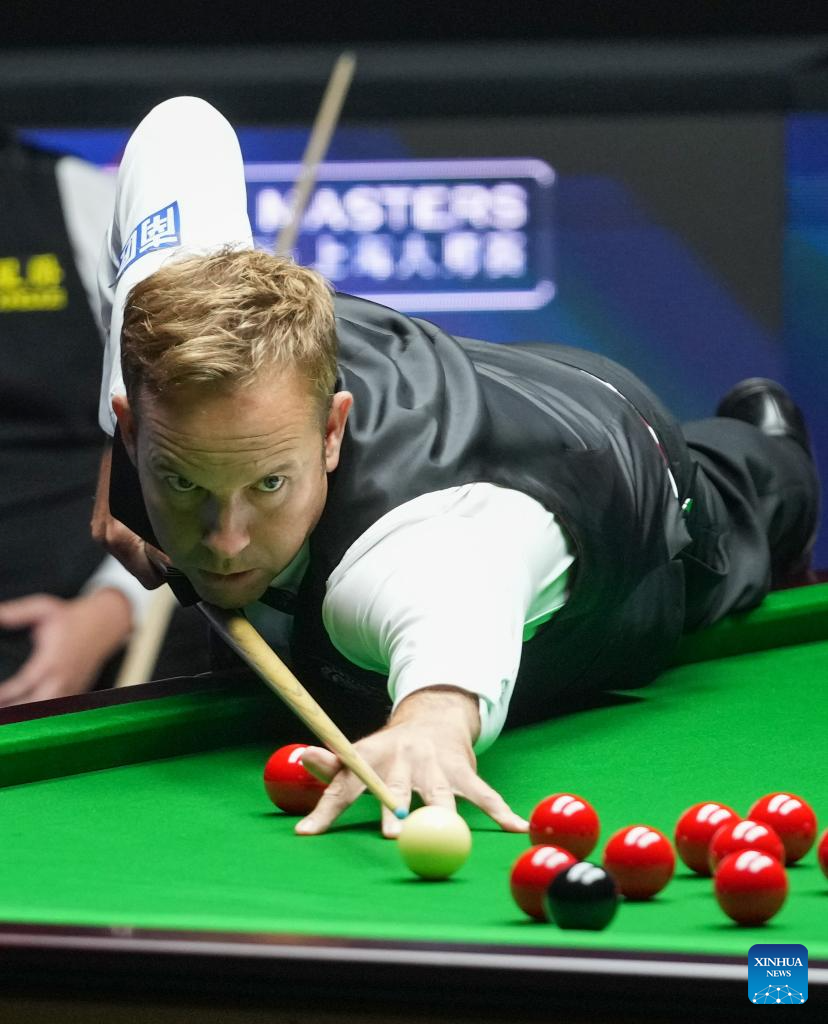 Ali Carter competes during the final match between Ali Carter of England and Kyren Wilson of England at the World Snooker Shanghai Masters 2025 in Shanghai, east China, Aug. 3, 2025. (Xinhua/Ding Ting)