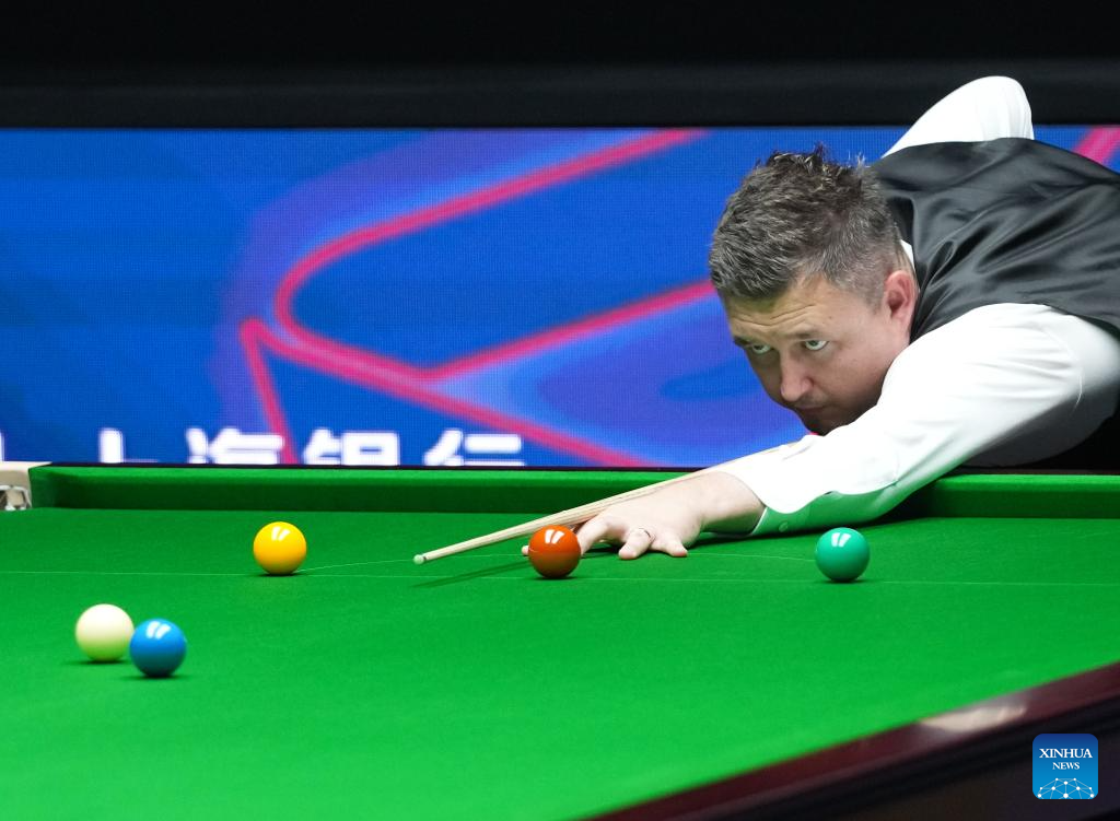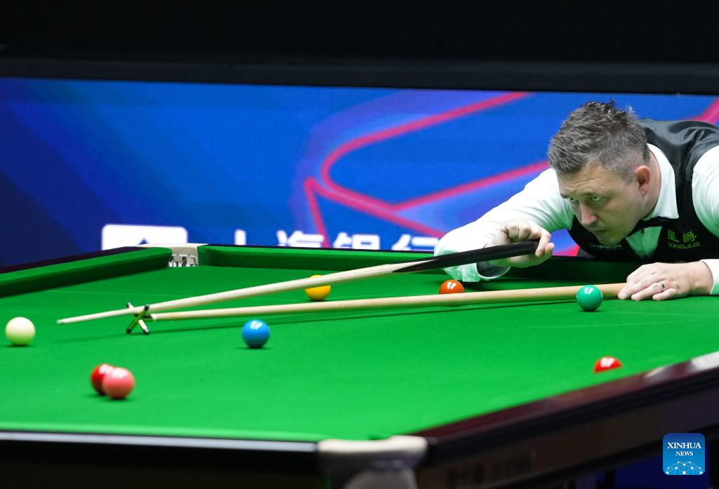 Kyren Wilson competes during the final match between Ali Carter of England and Kyren Wilson of England at the World Snooker Shanghai Masters 2025 in Shanghai, east China, Aug. 3, 2025. (Xinhua/Ding Ting)