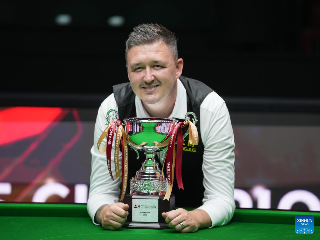 Kyren Wilson of England poses with the trophy during the awarding ceremony after the final match between Ali Carter of England and Kyren Wilson of England at the World Snooker Shanghai Masters 2025 in Shanghai, east China, Aug. 3, 2025. (Xinhua/Ding Ting)