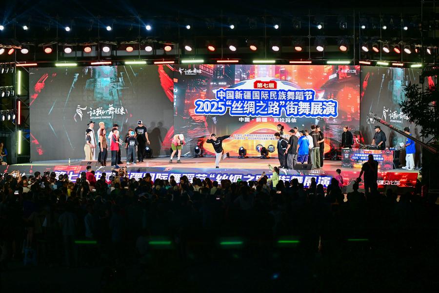 A dancer from Kazakhstan performs during a street dance show in Karamay, northwest China's Xinjiang Uygur Autonomous Region, Aug. 3, 2025. (Xinhua/Ding Lei)Dancers from Kazakhstan perform during a street dance show in Karamay, northwest China's Xinjiang Uygur Autonomous Region, Aug. 3, 2025. (Xinhua/Ding Lei)Dancers perform during a street dance show in Karamay, northwest China's Xinjiang Uygur Autonomous Region, Aug. 3, 2025. (Xinhua/Ding Lei)Dancers showcase a dance battle during a street dance show in Karamay, northwest China's Xinjiang Uygur Autonomous Region, Aug. 3, 2025. (Xinhua/Ding Lei)Dancers perform during a street dance show in Karamay, northwest China's Xinjiang Uygur Autonomous Region, Aug. 3, 2025. (Xinhua/Ding Lei)Dancers perform during a street dance show in Karamay, northwest China's Xinjiang Uygur Autonomous Region, Aug. 3, 2025. (Xinhua/Ding Lei)Dancers showcase a dance battle during a street dance show in Karamay, northwest China's Xinjiang Uygur Autonomous Region, Aug. 3, 2025. (Xinhua/Ding Lei)People watch a street dance show in Karamay, northwest China's Xinjiang Uygur Autonomous Region, Aug. 3, 2025. (Xinhua/Ding Lei)People watch a street dance show in Karamay, northwest China's Xinjiang Uygur Autonomous Region, Aug. 3, 2025. (Xinhua/Ding Lei)Dancers perform during a street dance show in Karamay, northwest China's Xinjiang Uygur Autonomous Region, Aug. 3, 2025. (Xinhua/Ding Lei)Dancers perform during a street dance show in Karamay, northwest China's Xinjiang Uygur Autonomous Region, Aug. 3, 2025. (Xinhua/Ding Lei)■
