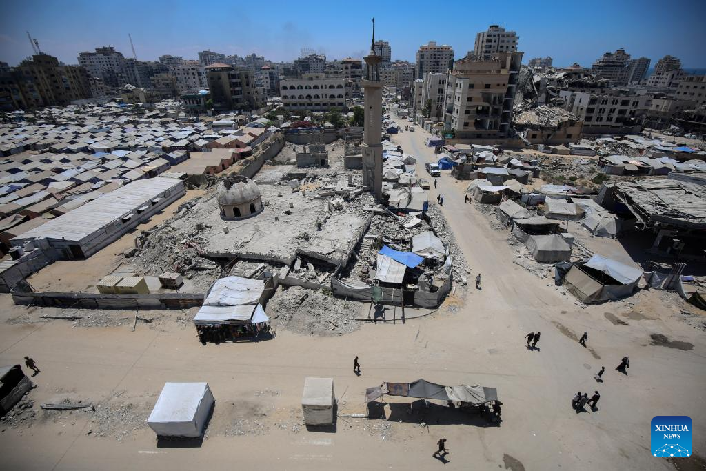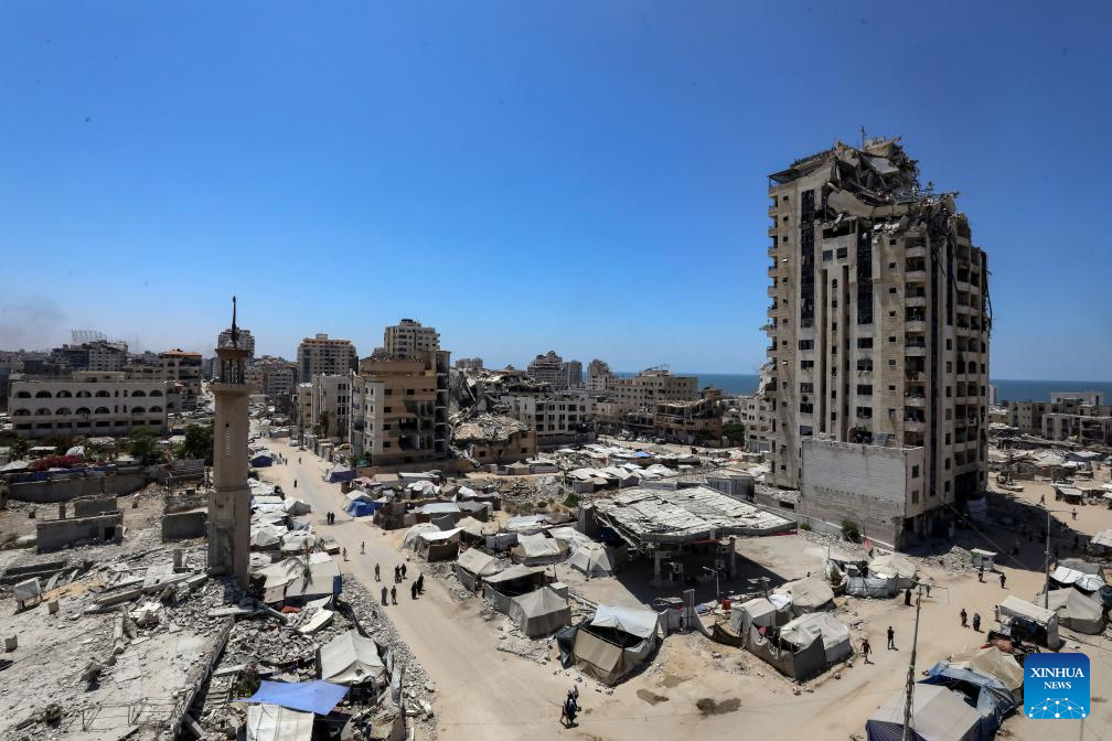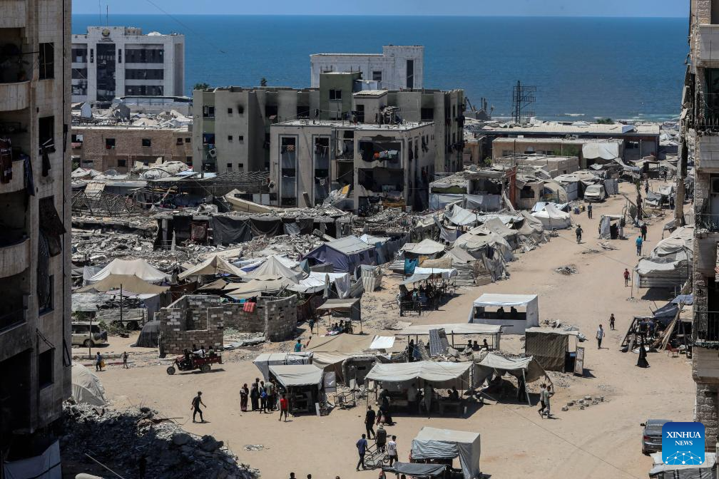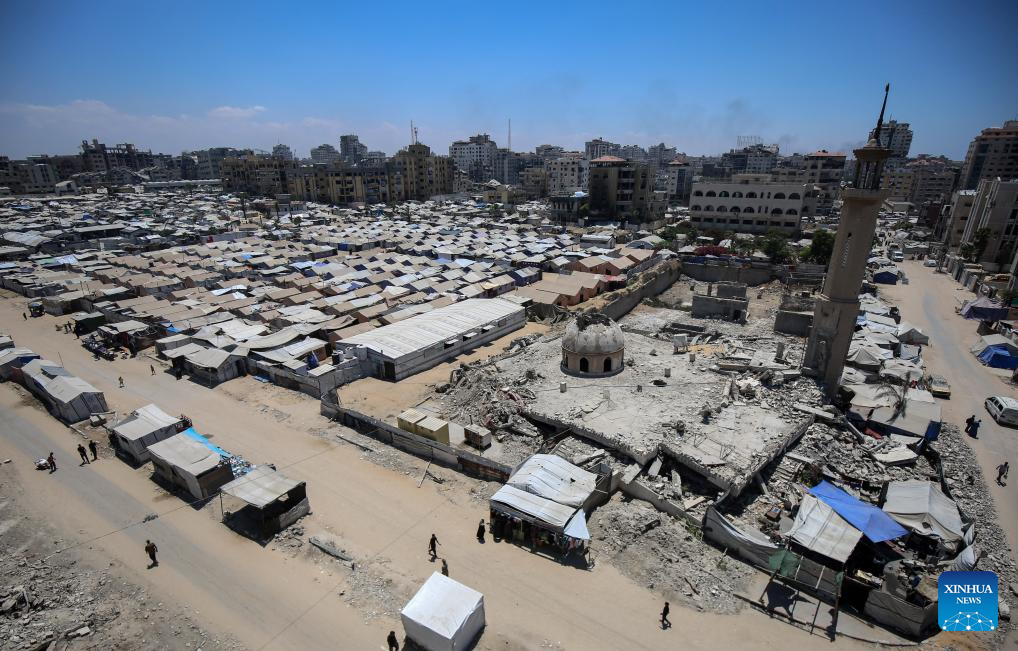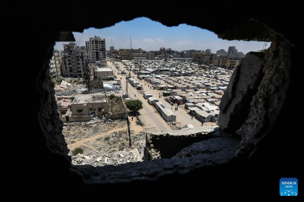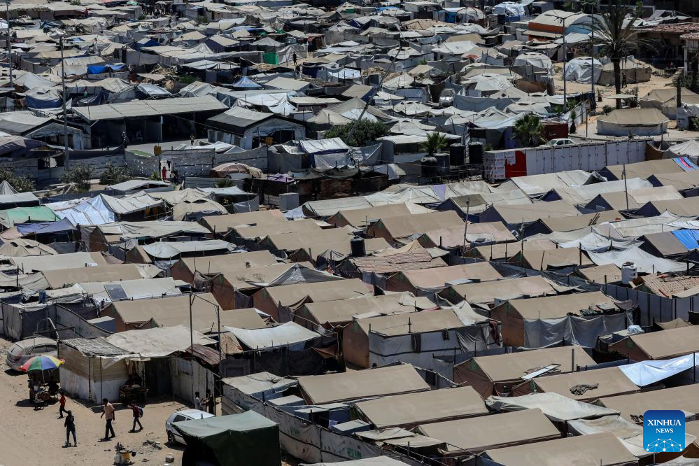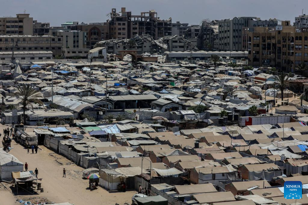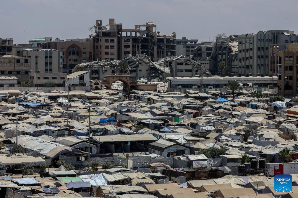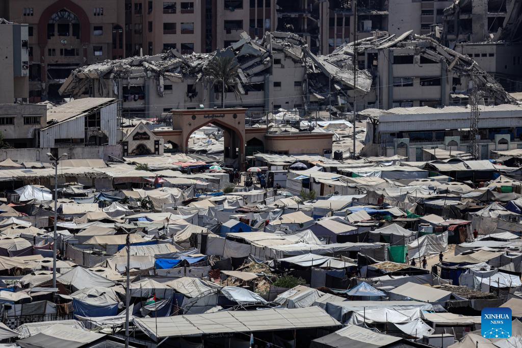 Tents for displaced Palestinians are seen at a temporary shelter in Gaza City, on Aug. 4, 2025. Gaza-based health authorities on Monday said at least 9,440 Palestinians have been killed and 37,986 others injured since Israel renewed its intensive strikes in Gaza on March 18, bringing the total death toll since October 2023 to 60,933, and injuries to 150,027. (Photo by Rizek Abdeljawad/Xinhua)