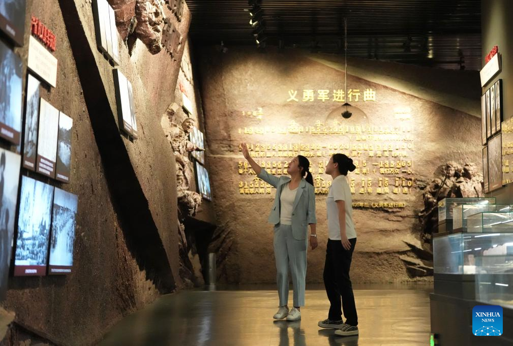 Shi Renhua (L) discusses with her colleague on improvement in docent service at the 9.18 Historical Museum in Shenyang, northeast China's Liaoning Province, July 28, 2025. Shi Renhua, head of public education service at the 9.18 Historical Museum in Shenyang, has devoted herself into study of historical documents as well as editorial projects since she joined the museum in 1999.
