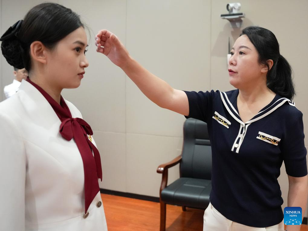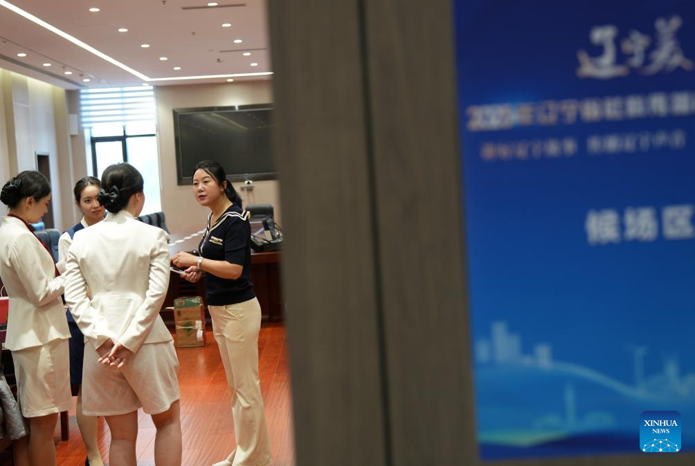 Shi Renhua (1st R) instructs docents attending a speech contest in Dadong District of Shenyang, northeast China's Liaoning Province, July 22, 2025. Shi Renhua, head of public education service at the 9.18 Historical Museum in Shenyang, has devoted herself into study of historical documents as well as editorial projects since she joined the museum in 1999.