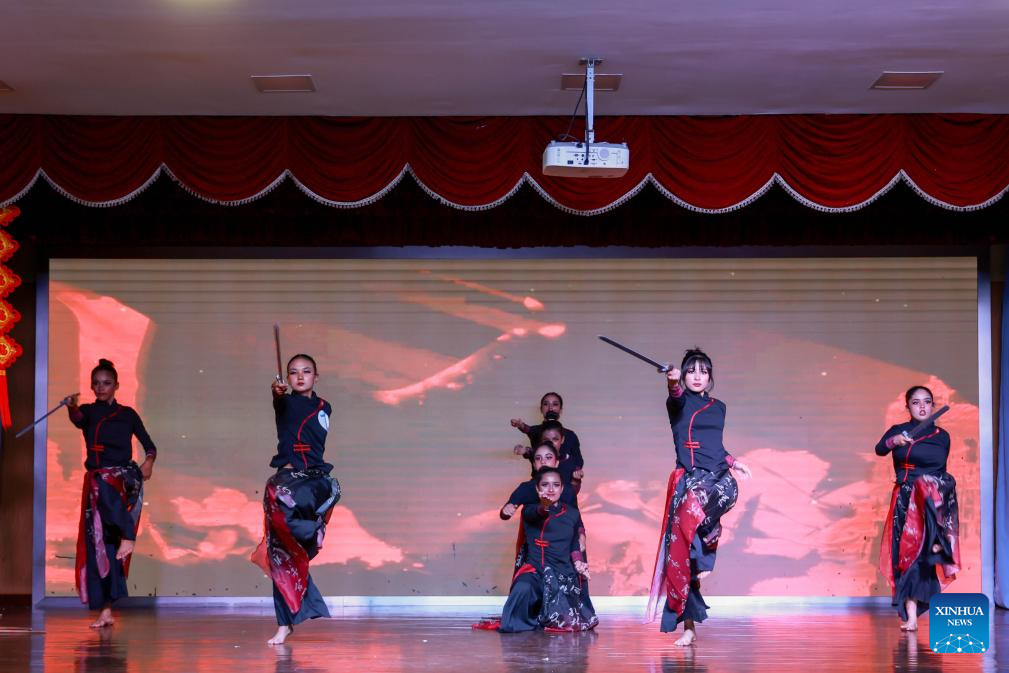 Contestants perform during the 11th Chinese culture talent competition for Nepali students in Kathmandu, Nepal, on Aug. 5, 2025. The 11th Chinese culture talent competition for Nepali students was held here on Tuesday. Nearly 300 contestants demonstrated their talents through 10 Chinese songs and 10 Chinese modern and classic dances, drawing a frequent outburst of cheers and applause from the audience. (Photo by Sulav Shrestha/Xinhua)