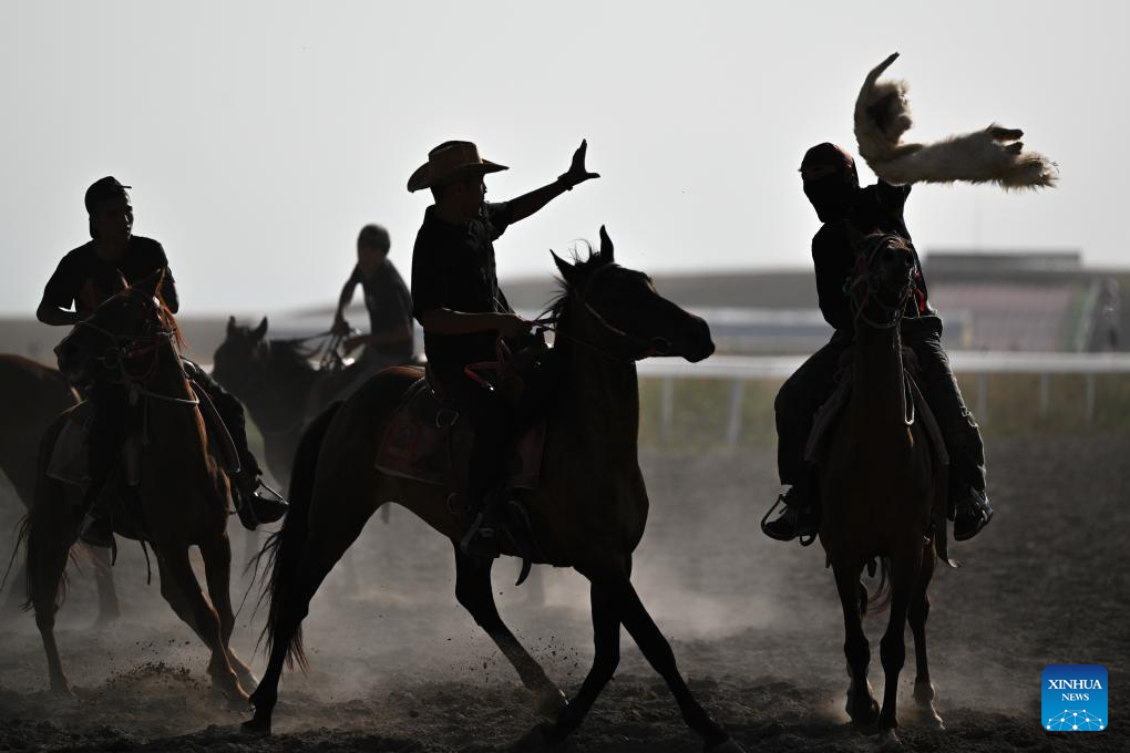 Horsemen perform in Zhaosu County of Ili Kazak Autonomous Prefecture, northwest China's Xinjiang Uygur Autonomous Region, July 29, 2025. Ili Kazak Autonomous Prefecture has ushered in its peak tourism period. The region's unique natural landscapes and cultural sites have attracted a large number of visitors. It received 54.93 million domestic tourists in the first seven months of this year, a year-on-year increase of 10.31 percent. (Xinhua/Xin Yuewei)