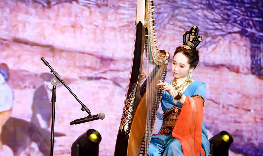 The harp-like Konghou is believed to have been introduced to the Chinese hinterland through what is now the northwest China's Xinjiang Uygur Autonomous Region in the prime period of the ancient Silk Road. This instrument flourished during the Tang Dynasty (618-907), frequently appearing in poetry, murals and imperial court performances.