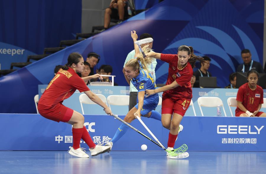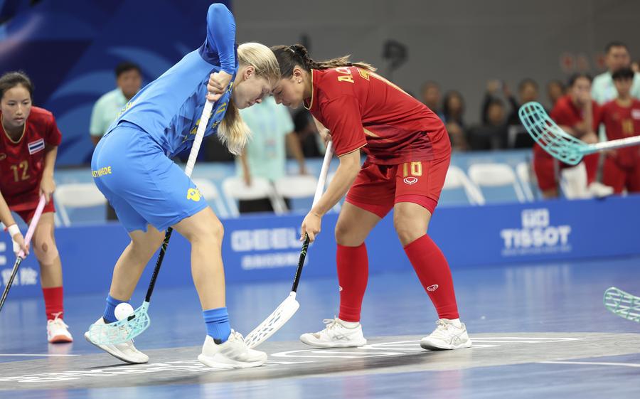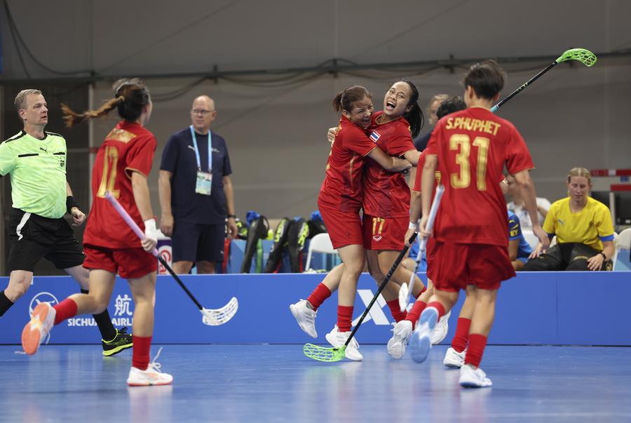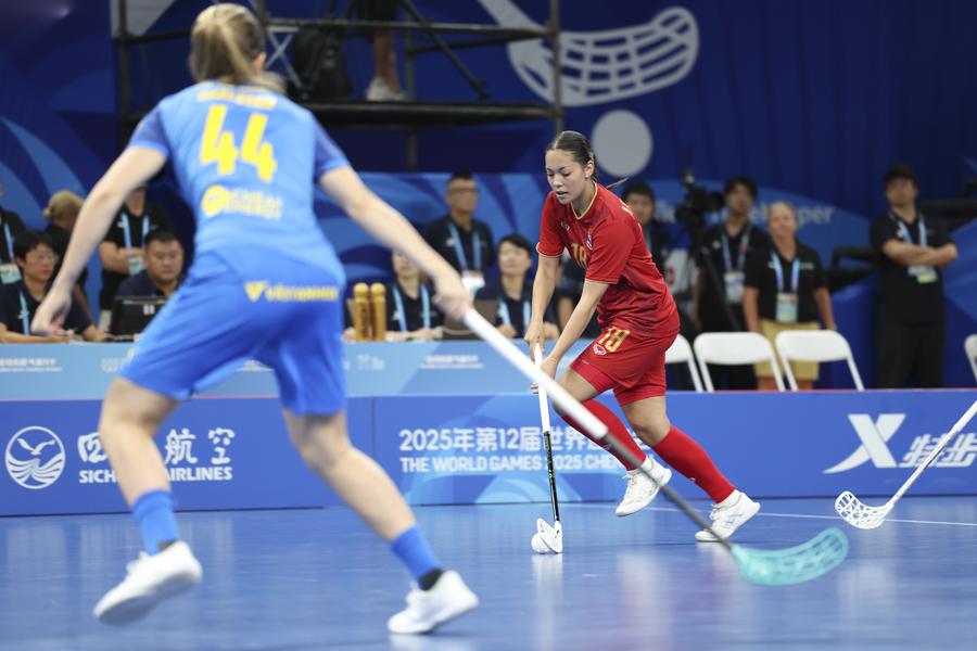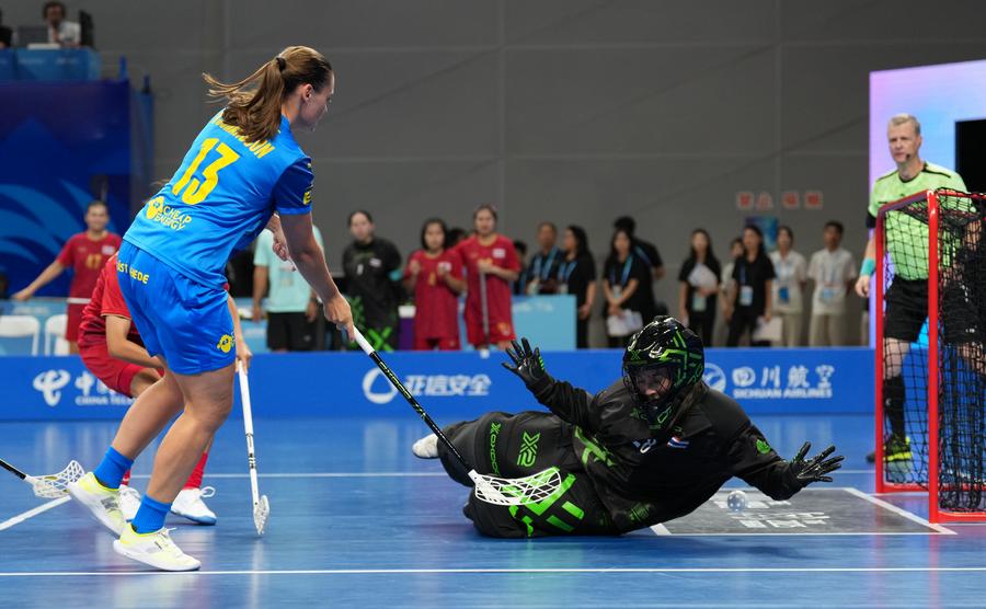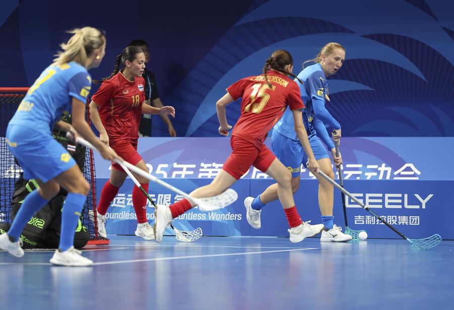 Actors perform before the women's preliminary round Group A match between Thailand and Sweden of Floorball at the World Games 2025 in Chengdu, southwest China's Sichuan Province, Aug. 6, 2025. (Xinhua/Zhang Liyun)Actors perform before the women's preliminary round Group A match between Thailand and Sweden of Floorball at the World Games 2025 in Chengdu, southwest China's Sichuan Province, Aug. 6, 2025. (Xinhua/Zhang Liyun)Actors perform before the women's preliminary round Group A match between Thailand and Sweden of Floorball at the World Games 2025 in Chengdu, southwest China's Sichuan Province, Aug. 6, 2025. (Xinhua/Zhang Liyun)Rungnapa Kebsomrong (5th L) of Thailand celebrates scoring with her teammates during the women's preliminary round Group A match between Thailand and Sweden of Floorball at the World Games 2025 in Chengdu, southwest China's Sichuan Province, Aug. 6, 2025. (Xinhua/Zhang Liyun)Hanna Nordstrand (C) of Sweden vies with Nelly Johansson (L) and Nathalie Olmats of Thailand during the women's preliminary round Group A match between Thailand and Sweden of Floorball at the World Games 2025 in Chengdu, southwest China's Sichuan Province, Aug. 6, 2025. (Xinhua/Zhang Liyun)Players of Sweden celebrate a goal during the women's preliminary round Group A match between Thailand and Sweden of Floorball at the World Games 2025 in Chengdu, southwest China's Sichuan Province, Aug. 6, 2025. (Xinhua/Zhang Liyun)Wilma Johansson (L) of Sweden shoots and scores during the women's preliminary round Group A match between Thailand and Sweden of Floorball at the World Games 2025 in Chengdu, southwest China's Sichuan Province, Aug. 6, 2025. (Xinhua/Li Xulun)Emelie Wibron (1st R) of Sweden and Cayenne Torstensson(2nd R) of Thailand compete during the women's preliminary round Group A match between Thailand and Sweden of Floorball at the World Games 2025 in Chengdu, southwest China's Sichuan Province, Aug. 6, 2025. (Xinhua/Zhang Liyun)Alexandra Carlbom (R) of Thailand drives the ball during the women's preliminary round Group A match between Thailand and Sweden of Floorball at the World Games 2025 in Chengdu, southwest China's Sichuan Province, Aug. 6, 2025. (Xinhua/Zhang Liyun)Latvia's goalkeeper Gabriels Silins (5th L) defends during the men's preliminary round Group A match between Latvia and Switzerland of Floorball at the World Games 2025 in Chengdu, southwest China's Sichuan Province, Aug. 6, 2025. (Xinhua/Zhang Liyun)Matteo Steiner of Switzerland shoots during the men's preliminary round Group A match between Latvia and Switzerland of Floorball at the World Games 2025 in Chengdu, southwest China's Sichuan Province, Aug. 6, 2025. (Xinhua/Li Xulun)Matteo Steiner (R) and Noel Seiler of Switzerland celebrate during the men's preliminary round Group A match between Latvia and Switzerland of Floorball at the World Games 2025 in Chengdu, southwest China's Sichuan Province, Aug. 6, 2025. (Xinhua/Zhang Liyun)■