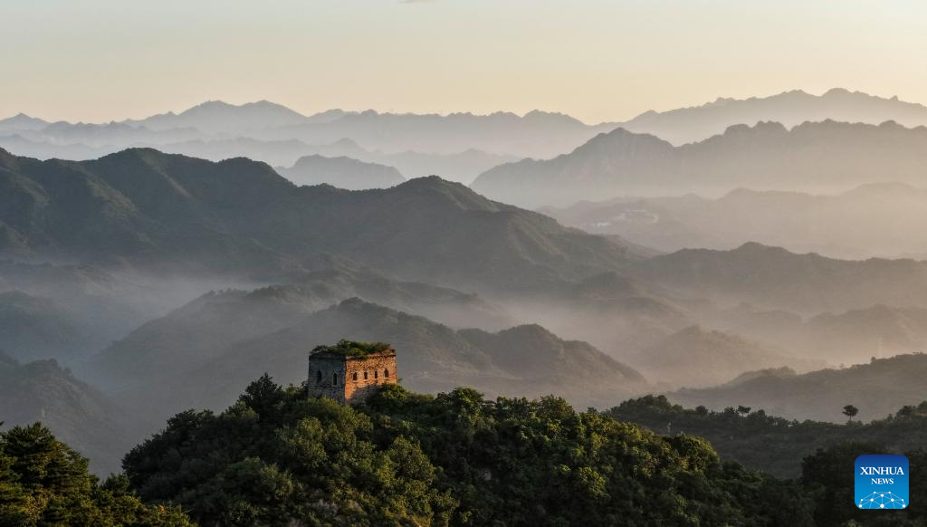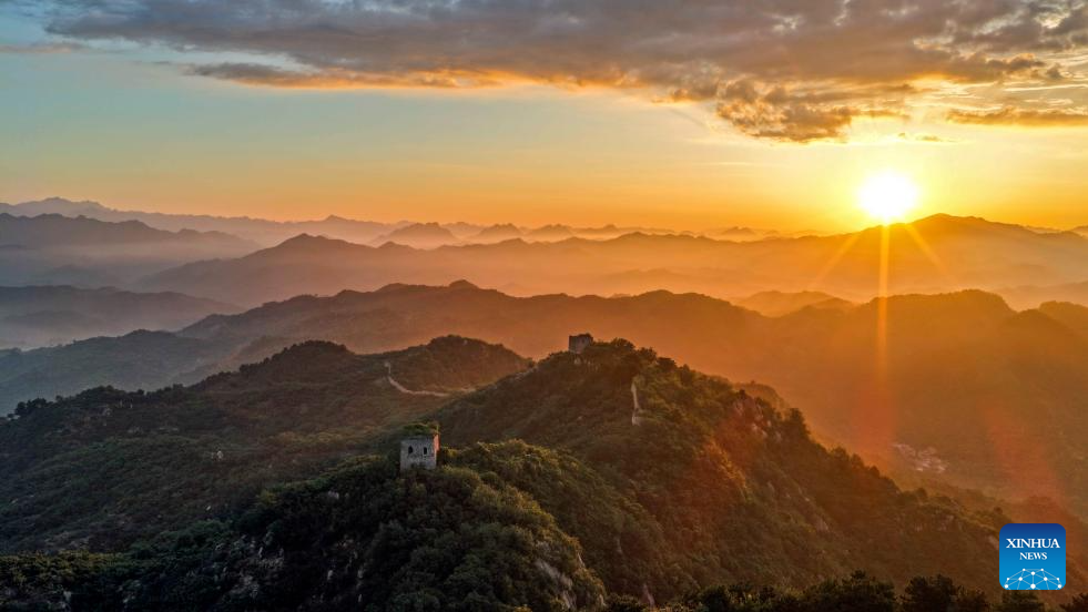 An aerial drone photo taken on Aug. 7, 2025 shows a view of the Great Wall in Zunhua City, north China's Hebei Province. (Photo by Liu Mancang/Xinhua)