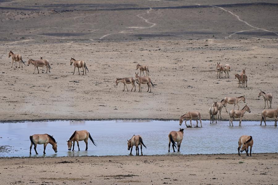 Przewalski's horses and other wild animals are pictured at the Karamaile Mountain Nature Reserve, northwest China's Xinjiang Uygur Autonomous Region, July 28, 2025. (Xinhua/Ding Lei)Przewalski's horses and other wild animals drink water at the Karamaile Mountain Nature Reserve, northwest China's Xinjiang Uygur Autonomous Region, July 28, 2025. (Xinhua/Ding Lei)An aerial drone photo taken on July 28, 2025 shows Przewalski's horses galloping at the Karamaile Mountain Nature Reserve, northwest China's Xinjiang Uygur Autonomous Region. (Xinhua/Ding Lei)Staff members let out Przewalski's horses destined for release into a large enclosure to help them adapt to the wild environment at the Karamaile Mountain Nature Reserve, northwest China's Xinjiang Uygur Autonomous Region, Spet.1, 2021. (Xinhua/Ding Lei)A staff member checks a water source at the Karamaile Mountain Nature Reserve, northwest China's Xinjiang Uygur Autonomous Region, July 28, 2025. (Xinhua/Ding Lei)A staff member sets an infrared camera at a water source at the Karamaile Mountain Nature Reserve, northwest China's Xinjiang Uygur Autonomous Region, July 28, 2025. (Xinhua/Ding Lei)