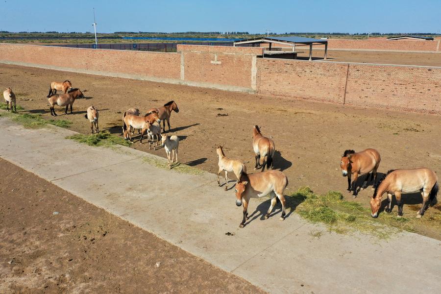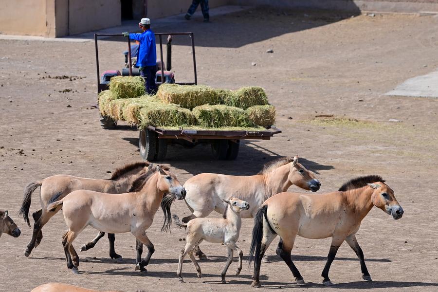 An aerial drone photo taken on July 29, 2025 shows the Xinjiang Wild Horse Breeding and Research Center in northwest China's Xinjiang Uygur Autonomous Region. (Xinhua/Ding Lei)A drone photo taken on July 29, 2025 shows Przewalski's horses at Xinjiang Wild Horse Breeding and Research Center in northwest China's Xinjiang Uygur Autonomous Region. (Xinhua/Ding Lei)This photo taken on July 29, 2025 shows Przewalski's horses at Xinjiang Wild Horse Breeding and Research Center in northwest China's Xinjiang Uygur Autonomous Region. (Xinhua/Ding Lei)A staff member feeds Przewalski's horses at Xinjiang Wild Horse Breeding and Research Center in northwest China's Xinjiang Uygur Autonomous Region, July 29, 2025. (Xinhua/Ding Lei)