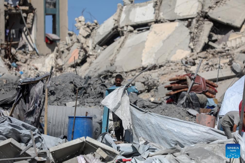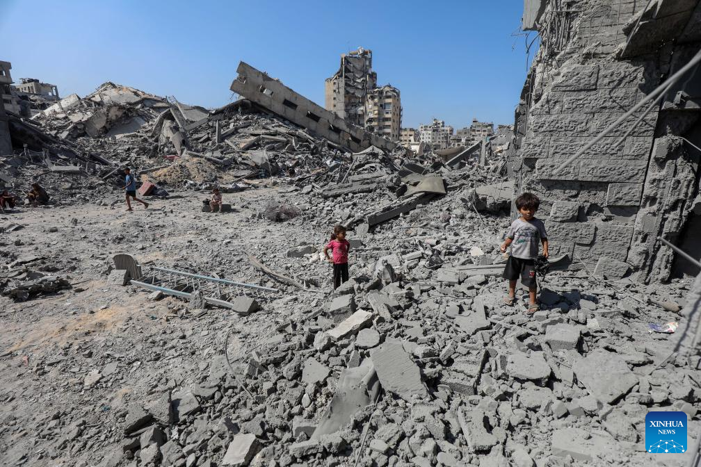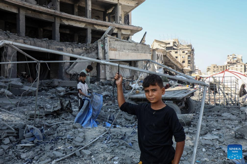 A Palestinian boy inspects the damage after an Israeli airstrike in the Sheikh Radwan area, northwest of Gaza City, on Aug. 6, 2025. At least 27 Palestinians were killed in Israeli attacks on Wednesday, while 20 others died in a food truck overturn in the Gaza Strip, according to Palestinian sources. (Photo by Rizek Abdeljawad/Xinhua)
