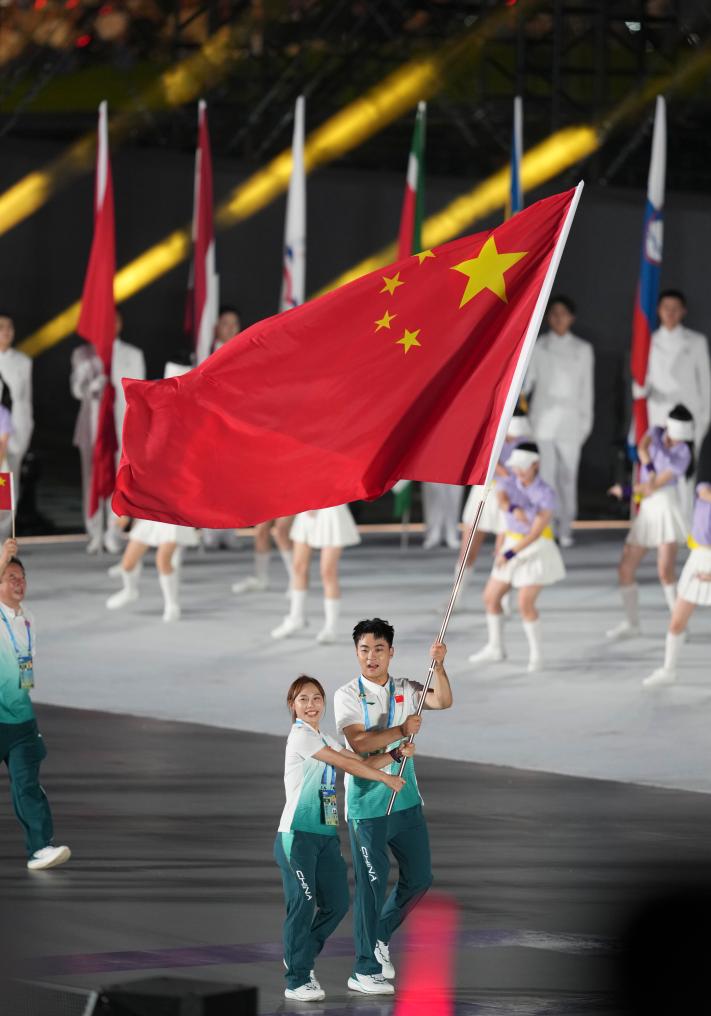 CHENGDU, Aug. 7 (Xinhua) -- Acrobatic gymnast Shi Jingwei and roller sports star Guo Dan shared their excitement after leading Team China into Thursday's Chengdu 2025 World Games opening ceremony as flagbearers.