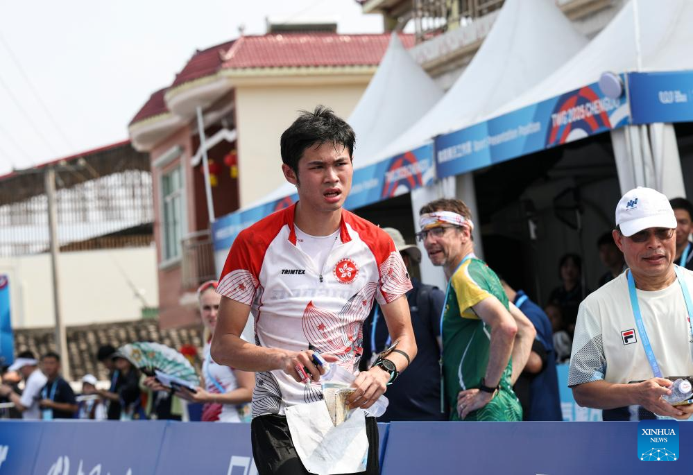 Au Joshua Ho Kiu of China's Hong Kong competes during the men's middle distance final of orienteering event at the World Games 2025 in Chengdu, southwest China's Sichuan Province, Aug. 8, 2025. (Xinhua/Chen Cheng)