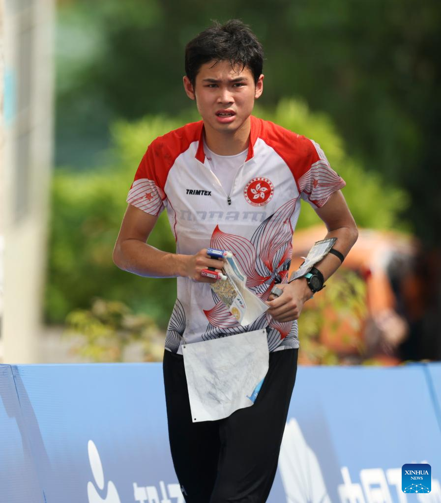 Au Joshua Ho Kiu of China's Hong Kong competes during the men's middle distance final of Orienteering event at the World Games 2025 in Chengdu, southwest China's Sichuan Province, Aug. 8, 2025. (Xinhua/Wang Xiang)