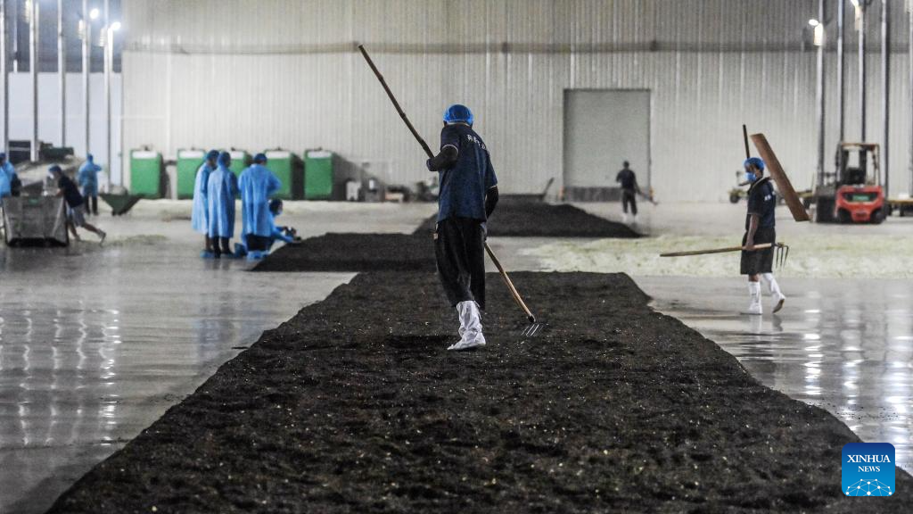 Workers produce jasmine tea at a tea plant in Hengzhou City, south China's Guangxi Zhuang Autonomous Region, on July 31, 2025. Hengzhou, dubbed the "hometown of jasmine in China," is home to some 340,000 jasmine flower farmers and over 180,000 mu (12,000 hectares) of jasmine fields.