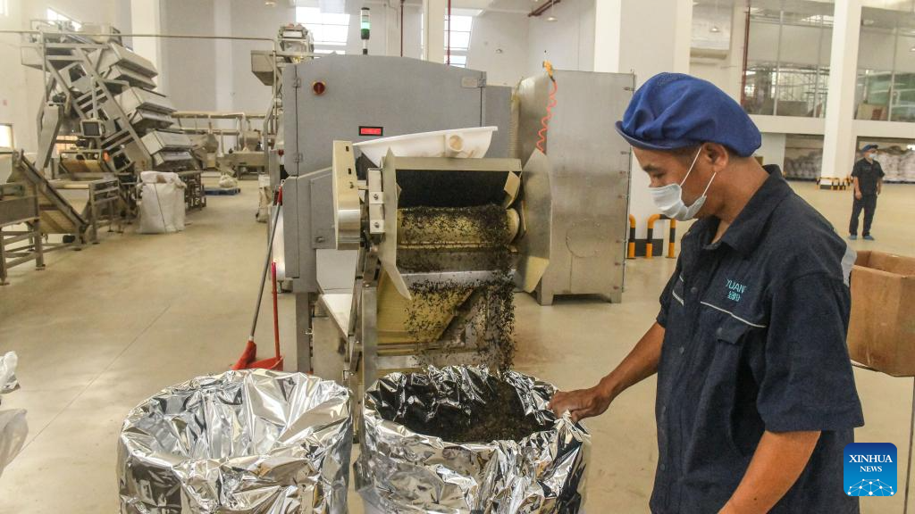 A production line of jasmine tea is pictured at a local tea plant in Hengzhou City, south China's Guangxi Zhuang Autonomous Region, on July 31, 2025. Hengzhou, dubbed the "hometown of jasmine in China," is home to some 340,000 jasmine flower farmers and over 180,000 mu (12,000 hectares) of jasmine fields.