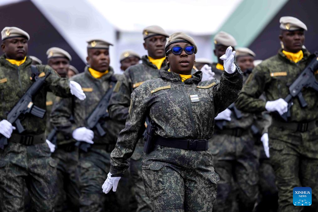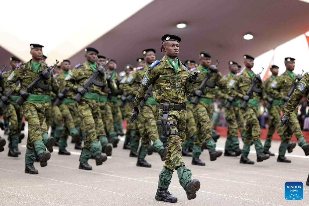 Soldiers take part in a military parade marking the 65th anniversary of Cote d'Ivoire's independence in Bouake, Cote d'Ivoire, Aug. 7, 2025. (Photo by Yvan Sonh/Xinhua)