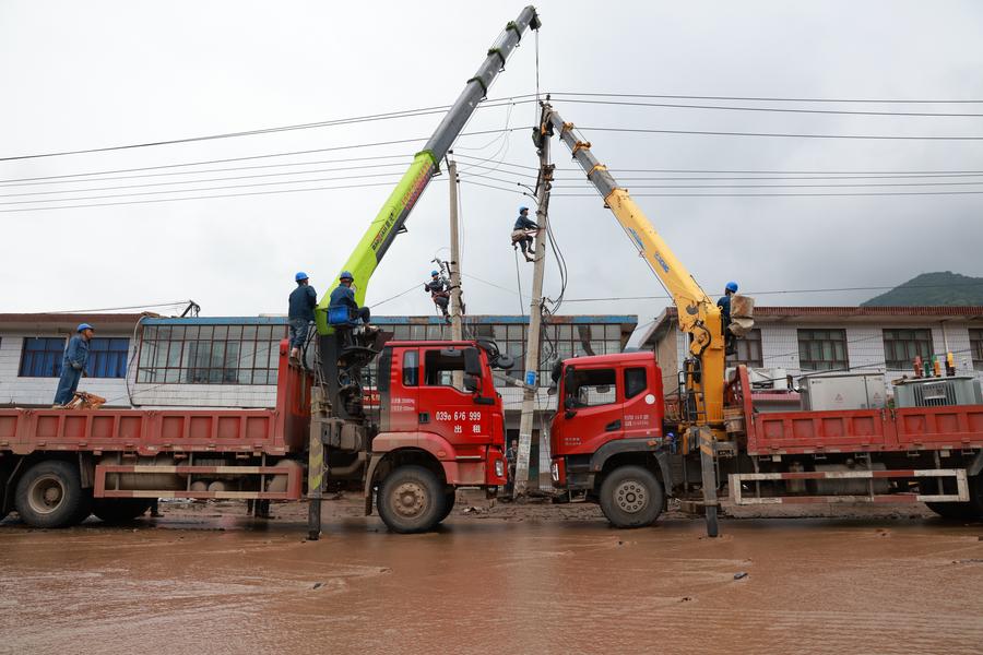 Eight local townships have been affected by the mountain torrents, with severe damage to roads, power supply, communication and other facilities. The mountain torrents have also flooded farmlands and damaged houses, according to the news briefing.