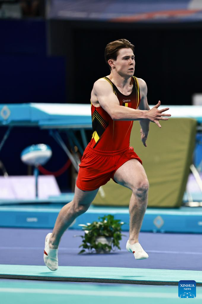 Brent Deklerck of Belgium competes during the men's double mini-trampoline final of the Trampoline Gymnastics event at The World Games 2025 in Chengdu, southwest China's Sichuan Province, Aug. 9, 2025. (Xinhua/Sun Fanyue)