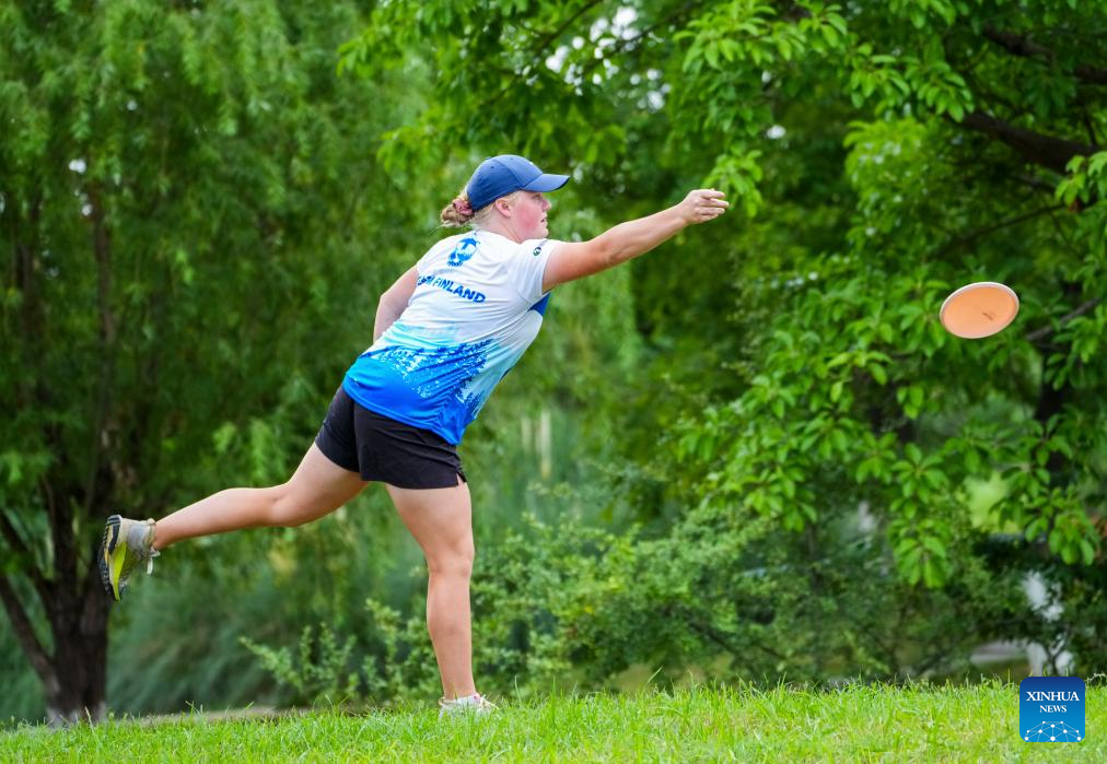 Evelina Salonen of Finland competes during the mixed doubles semifinals of the Disc Golf event at The World Games 2025 in Chengdu, southwest China's Sichuan Province, Aug. 9, 2025. (Xinhua/Chen Xinbo)