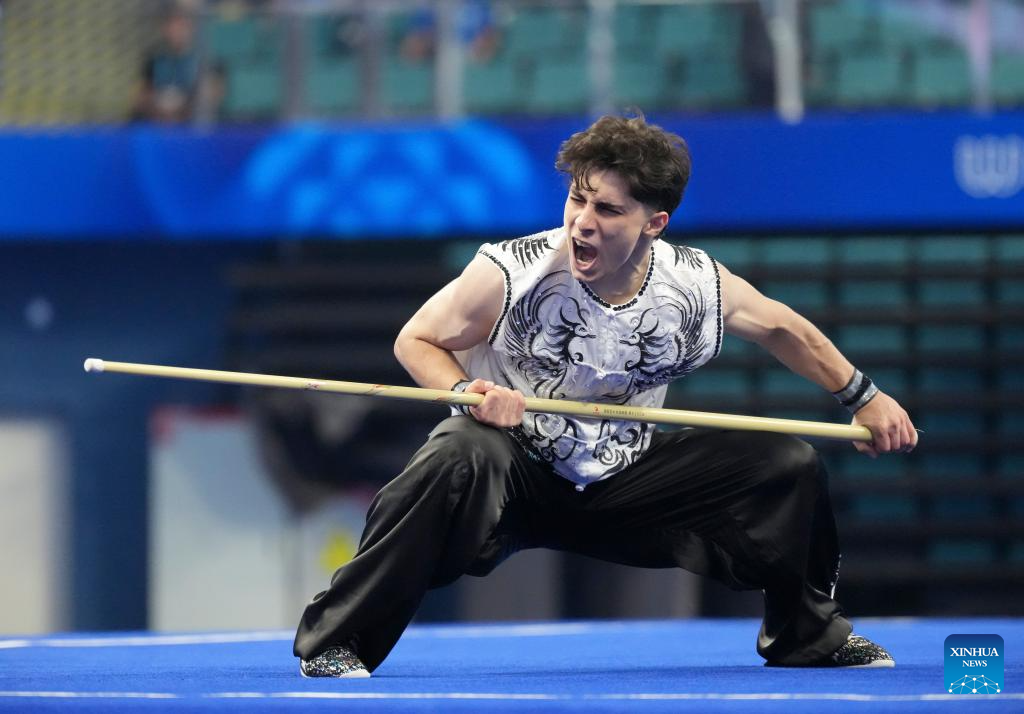 Shahin Banitalebi of Iran competes during the men's Nanquan-Nangun final of Wushu event at the World Games 2025 in Chengdu, southwest China's Sichuan Province, Aug. 8, 2025. (Xinhua/Xu Suhui)