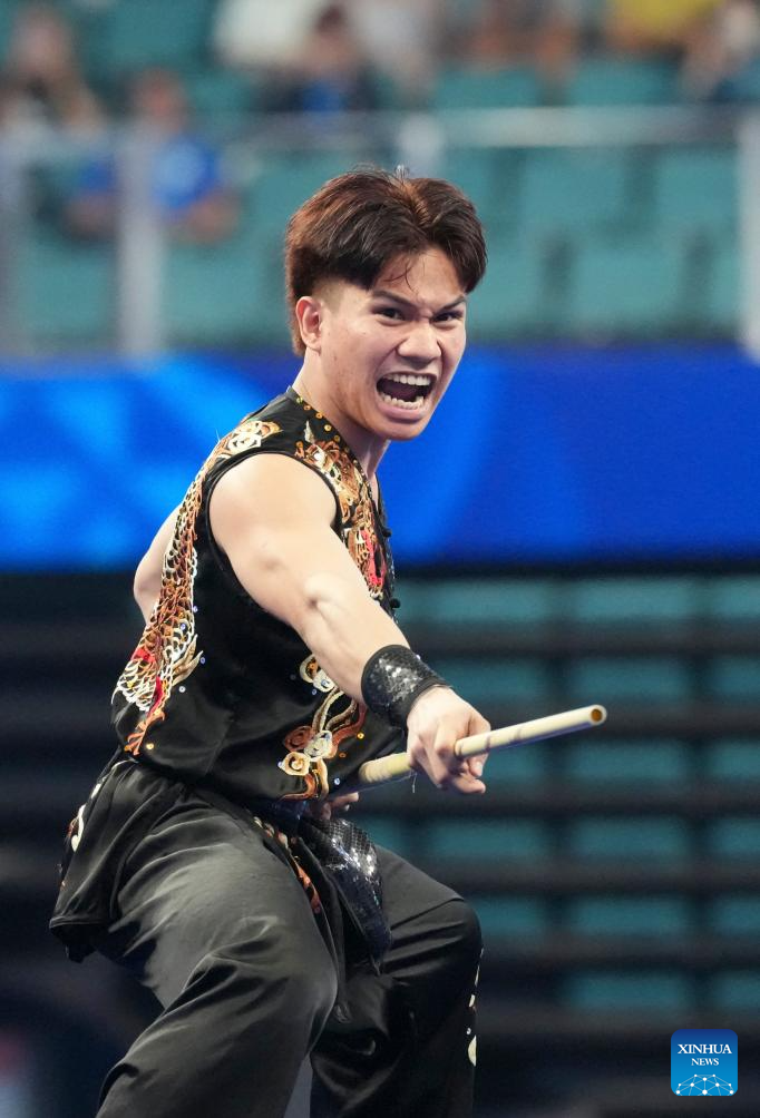 Mohammad Adi Salihin Bin Roslan of Brunei competes during the men's Nanquan-Nangun final of Wushu event at the World Games 2025 in Chengdu, southwest China's Sichuan Province, Aug. 8, 2025. (Xinhua/Xu Suhui)