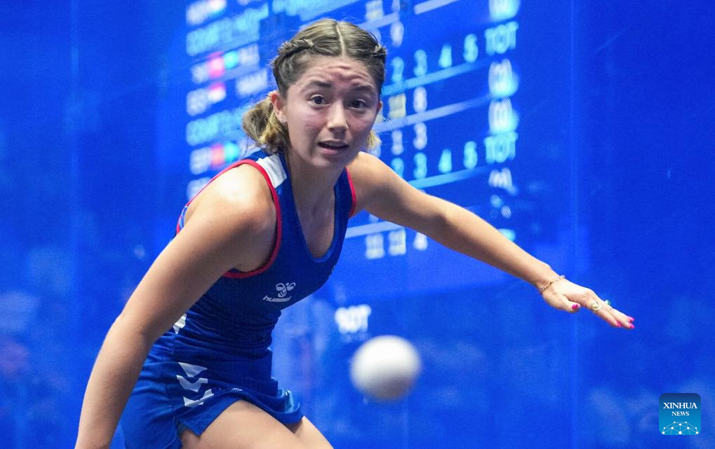 Kara Lincou of France competes during the Squash event women's singles round of 16 match between Lee Ka Yi of China's Hong Kong and Kara Lincou of France at The World Games 2025 in Chengdu, southwest China's Sichuan Province, Aug. 9, 2025. (Xinhua/Li Xulun)