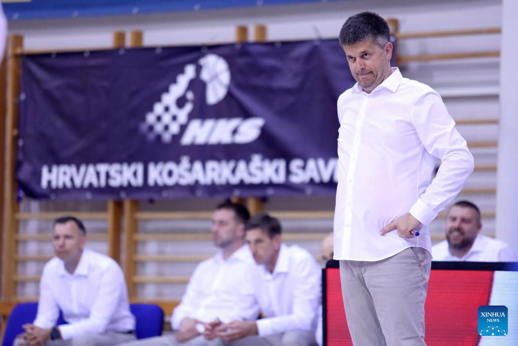 Head Coach of Croatia Tomislav Mijatovic reacts during the FIBA Basketball World Cup 2027 European Pre-Qualifiers group G Round 2 match between Croatia and Denmark in Opatija, Croatia, on Aug. 9, 2025. (Photo by Nel Pavletic/PIXSELL via Xinhua)