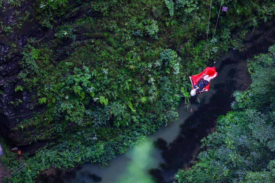 "It was so thrilling. I felt like I was flying!" said Zhou Muning, a tourist from Chengdu. "I'd seen these extreme sports on short videos before, and I came specifically to try this time. The experience is unforgettable."