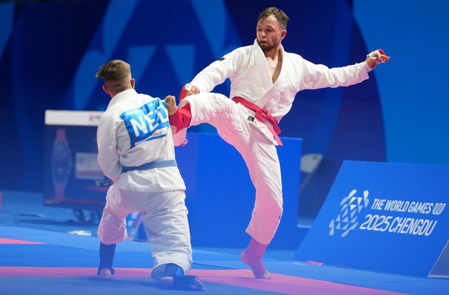 CHENGDU, Aug. 10 (Xinhua) -- Ukraine's Bohdan Mochulskyi secured a third consecutive ju-jitsu World Games gold medal in the men's 62kg fighting on Sunday, while South Korea earned its first two golds at the Chengdu Games through the women's Ne-Waza.