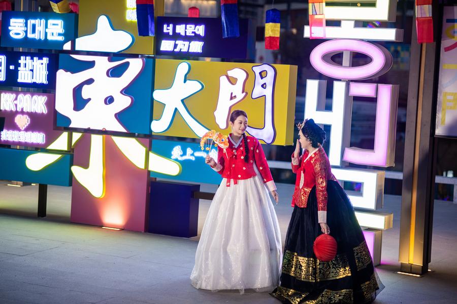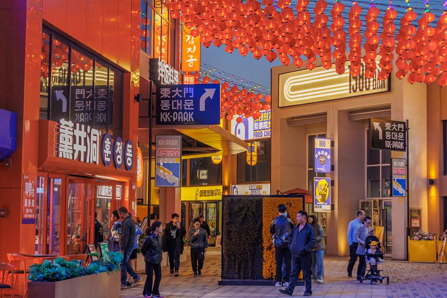Inspired by the famed Dongdaemun Design Plaza in Seoul, the Republic of Korea (ROK), the block in Yancheng combines a streamlined modern design with traditional elements of Korean houses, creating a Korean-style international entertainment district that integrates amusement and commerce.