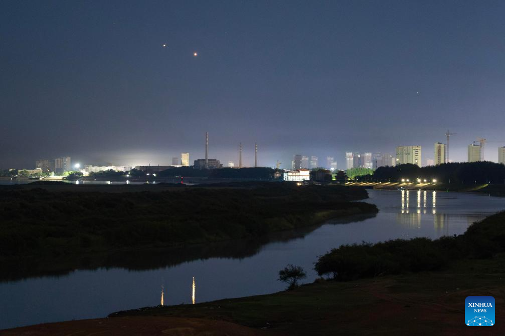 This photo taken on Aug. 12, 2025 shows the planets of Jupiter and Venus in the sky over Qiqihar City, northeast China's Heilongjiang Province. (Photo by Wang Yonggang/Xinhua)