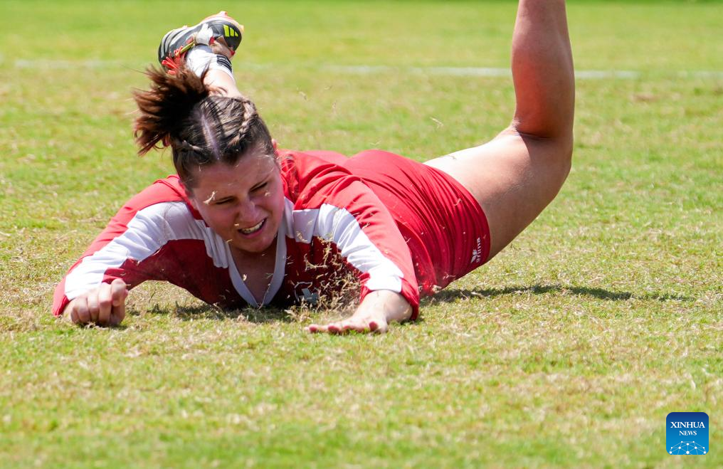 Adela Lang of Switzerland falls during the Fistball Women's Semifinal Match between Germany and Switzerland at The World Games 2025 in Chengdu, southwest China's Sichuan Province, Aug. 12, 2025. (Xinhua/Tenzin Nyida)
