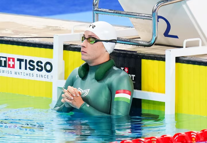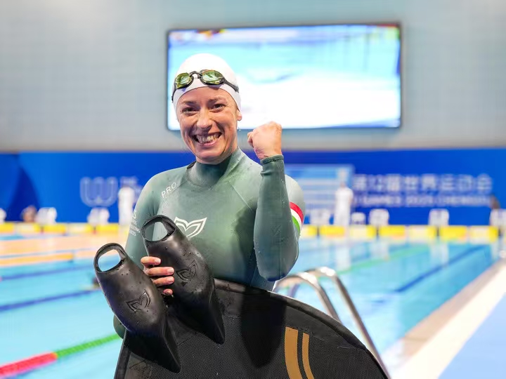 The Hungarian freediver had just shattered the women's dynamic with fins (DYN) world record at the Chengdu World Games on Monday, swimming an astonishing 300 meters underwater on a single breath and breaking the previous mark of 284 meters.