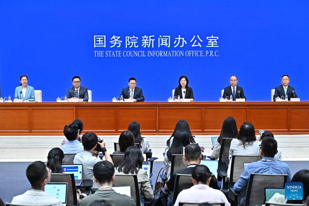 The State Council Information Office (SCIO) holds a policy briefing on China's interest subsidy policies for personal consumption loans and lending for service sector business entities, in Beijing, capital of China, Aug. 13, 2025. (Xinhua/Li Xin)