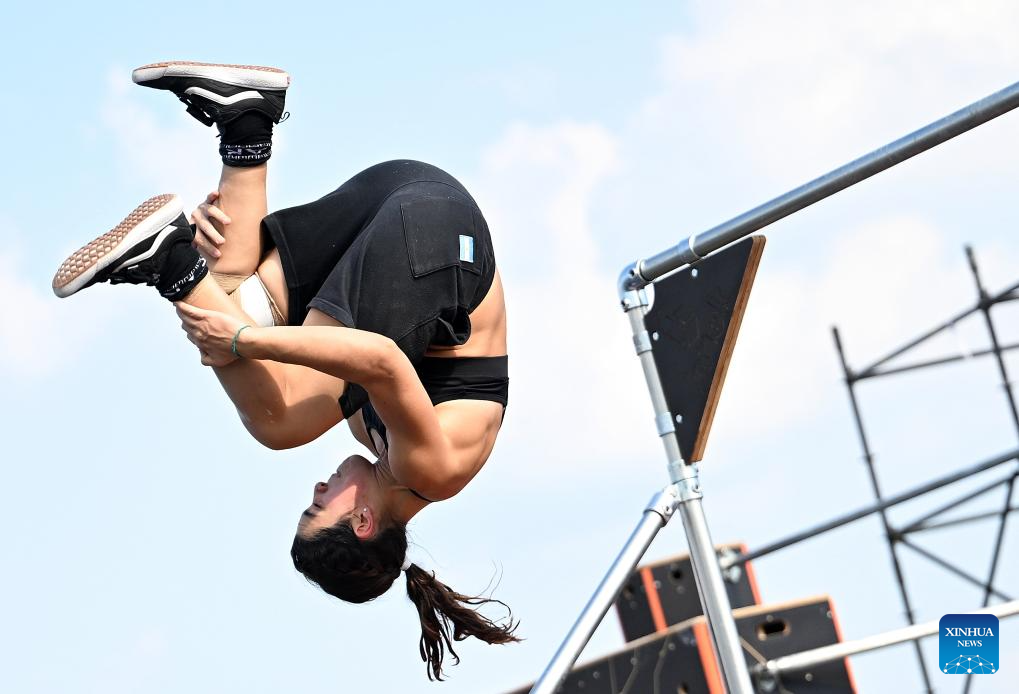 Sara Banchoff Tzancoff of Argentina competes during the Women's Freestyle Final of Parkour event at The World Games 2025 in Chengdu, southwest China's Sichuan Province, Aug. 13, 2025. (Xinhua/Li Jianan)
