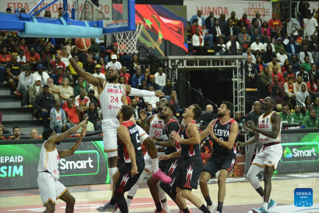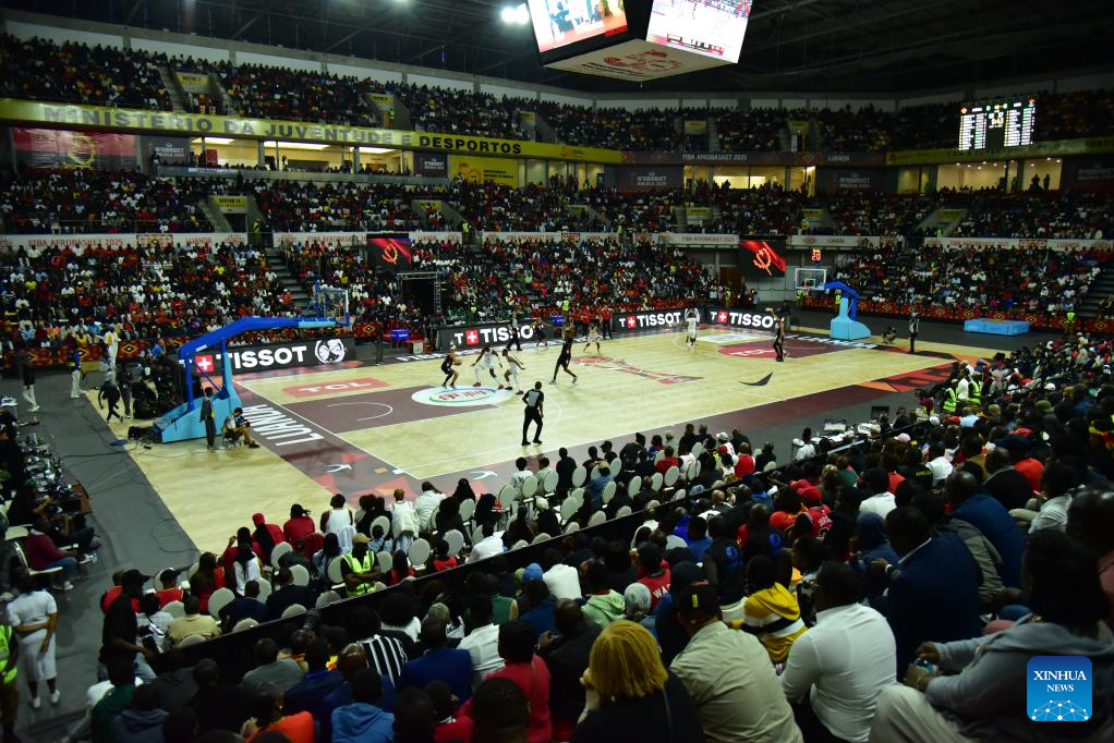 Photo taken on Aug. 12, 2025 shows the Group C match between Angola and Libya at the FIBA AfroBasket 2025 in Luanda, Angola. (Photo by Julio Kikebu/Xinhua)