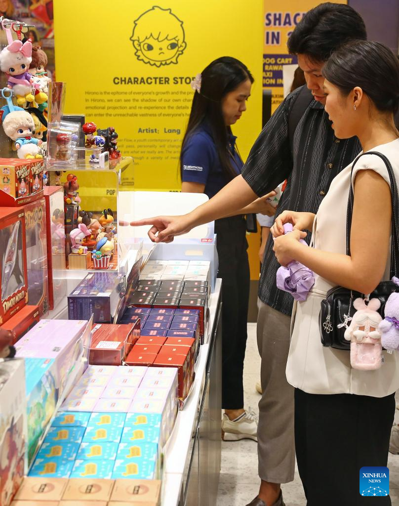 Consumers visit a Pop Mart store in Bangkok, Thailand, May 19, 2025. Bag charms have gained increasingly popularity in China recently, which allow young people to express themselves while fueling an emgering business.
