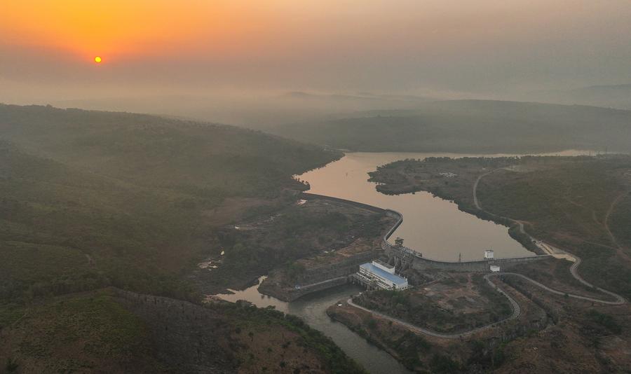 CONAKRY, Aug. 14 (Xinhua) -- On the Konkoure River flowing down from the Fouta Djallon highlands in central Guinea, the striking structure of the Kaleta Hydropower Station is reflected in the waters.