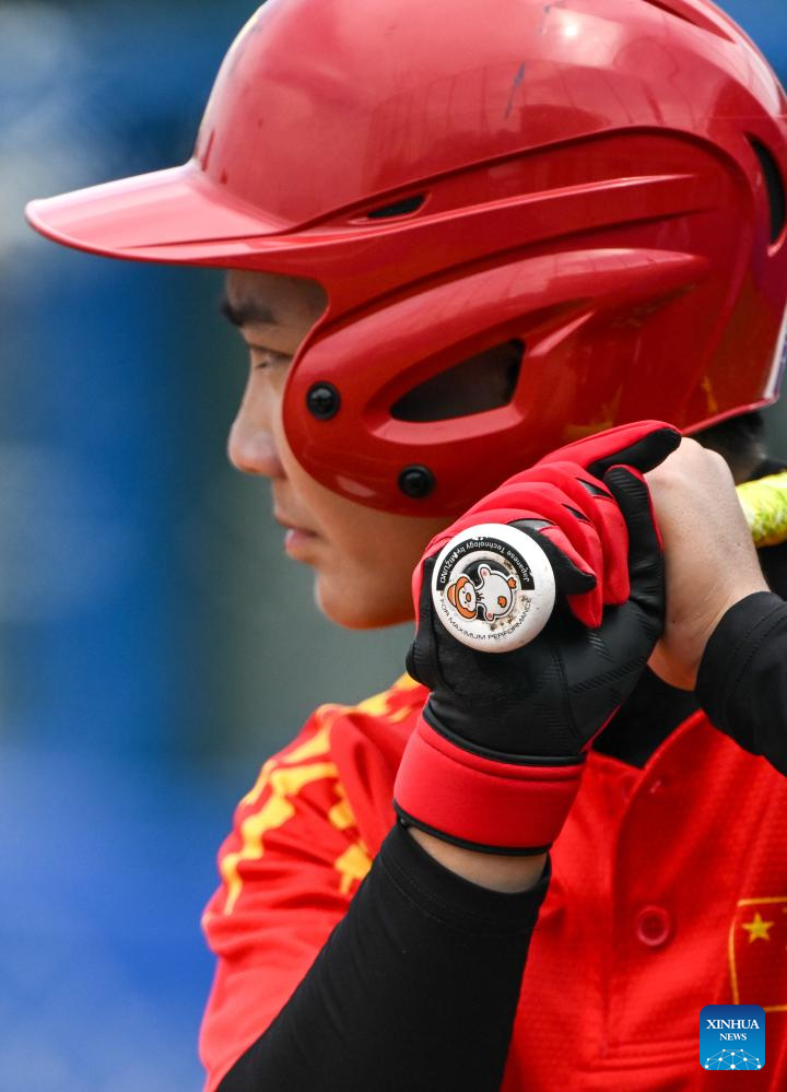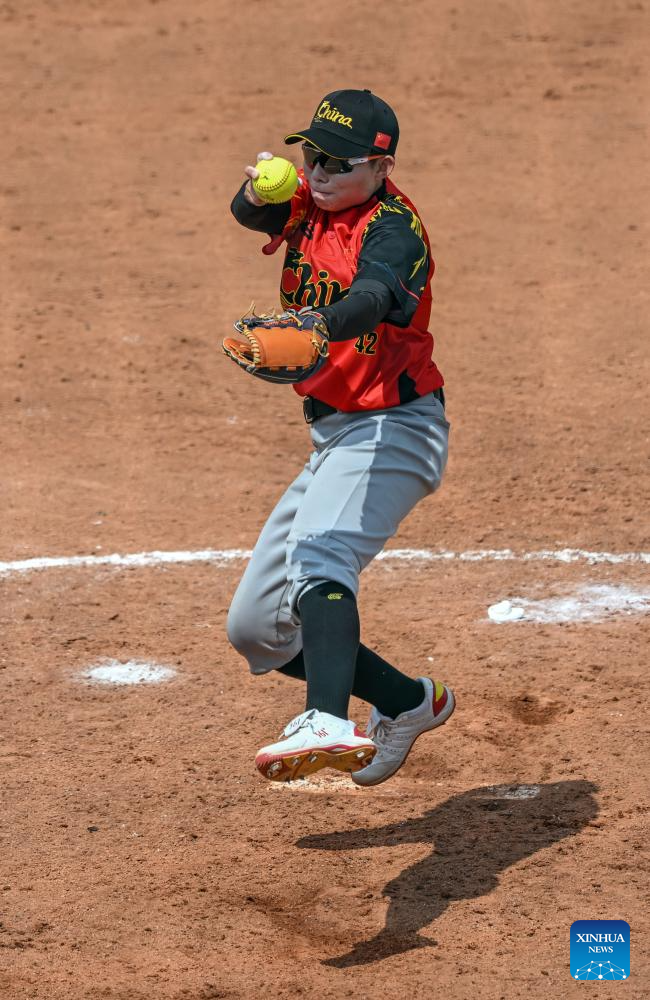 Wang Bei of China competes during the Softball Women's Preliminary Round Group A Game between Chinese Taipei and China at The World Games 2025 in Chengdu, southwest China's Sichuan Province, Aug. 14, 2025. (Xinhua/Feng Kaihua)