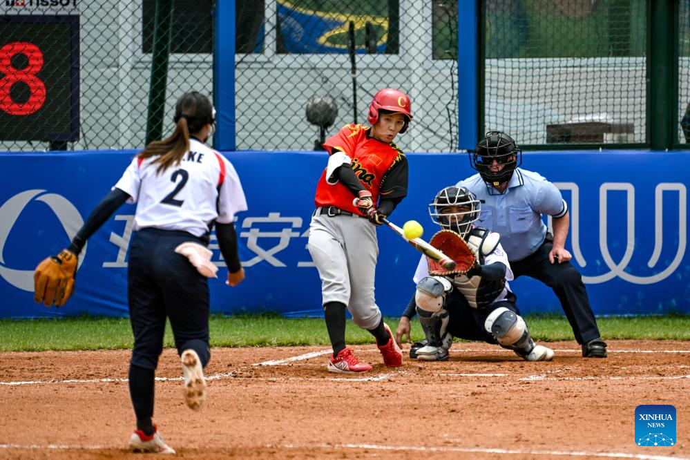 Yan Siyu of China competes during the Softball Women's Preliminary Round Group A Game between Chinese Taipei and China at The World Games 2025 in Chengdu, southwest China's Sichuan Province, Aug. 14, 2025. (Xinhua/Feng Kaihua)