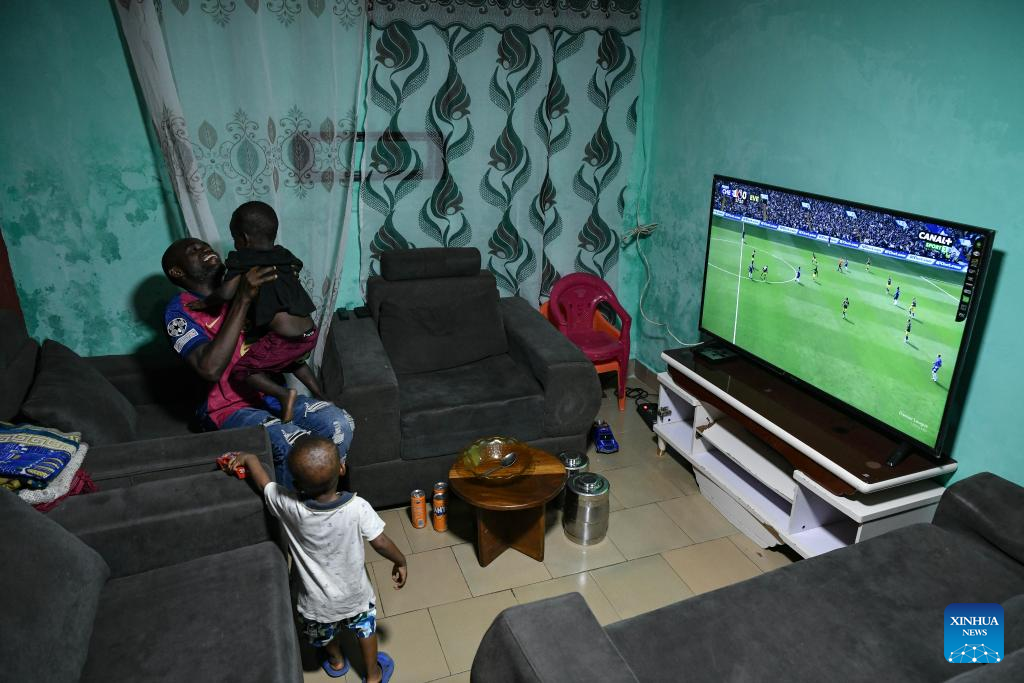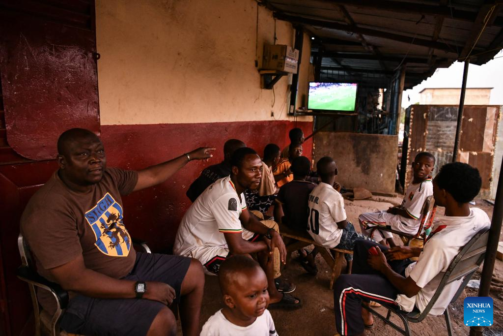 (250813) -- CONAKRY, Aug. 13, 2025 (Xinhua) -- Local residents watch television in a community in Conakry, Guinea, on April 26, 2025. (Xinhua/Han Xu)