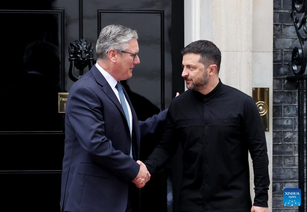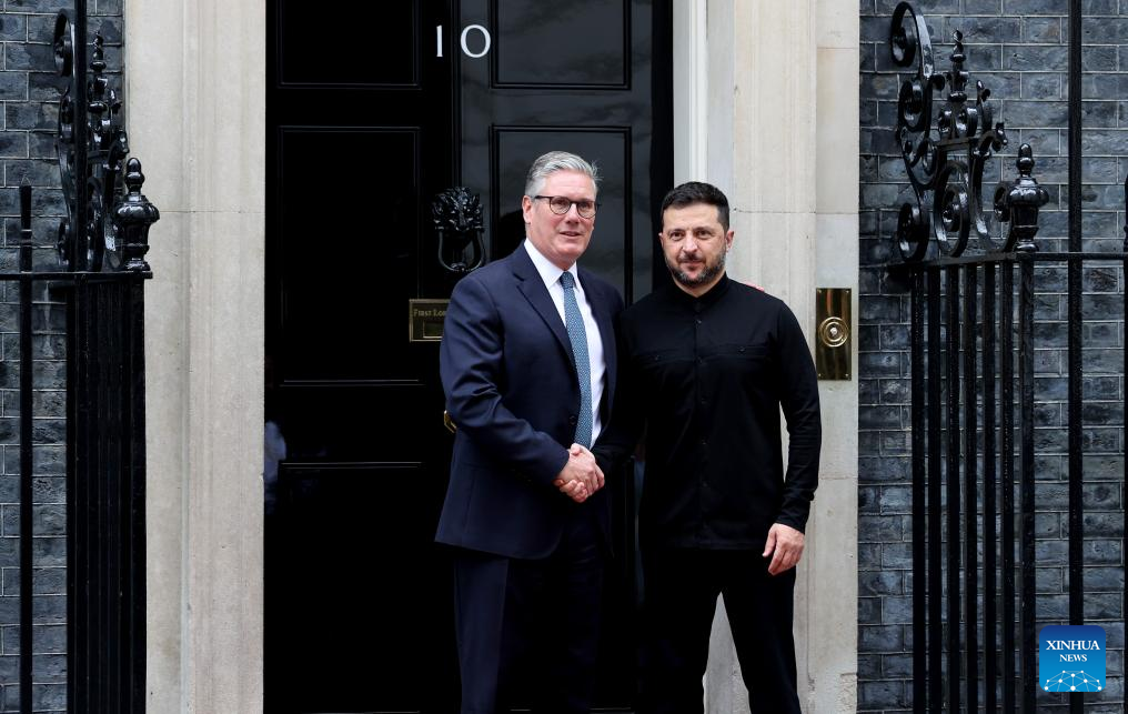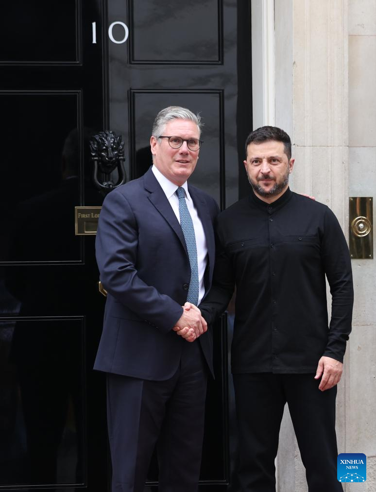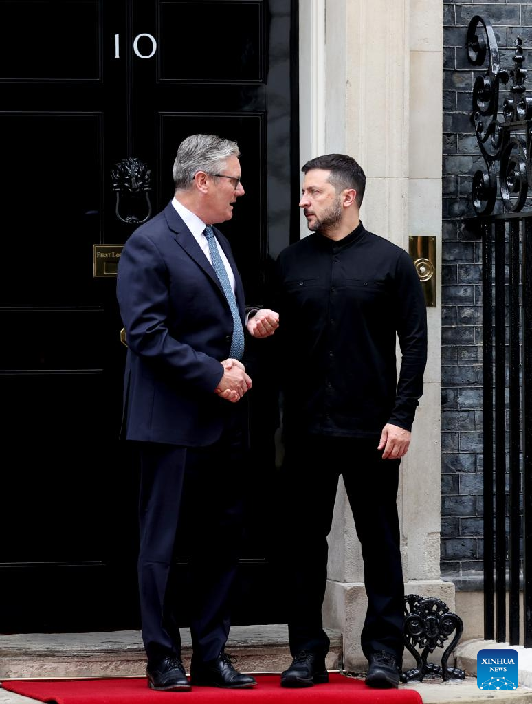 LONDON, Aug. 14 (Xinhua) -- British Prime Minister Keir Starmer met with Ukrainian President Volodymyr Zelensky on Thursday at Downing Street in London, the Prime Minister's Office said.