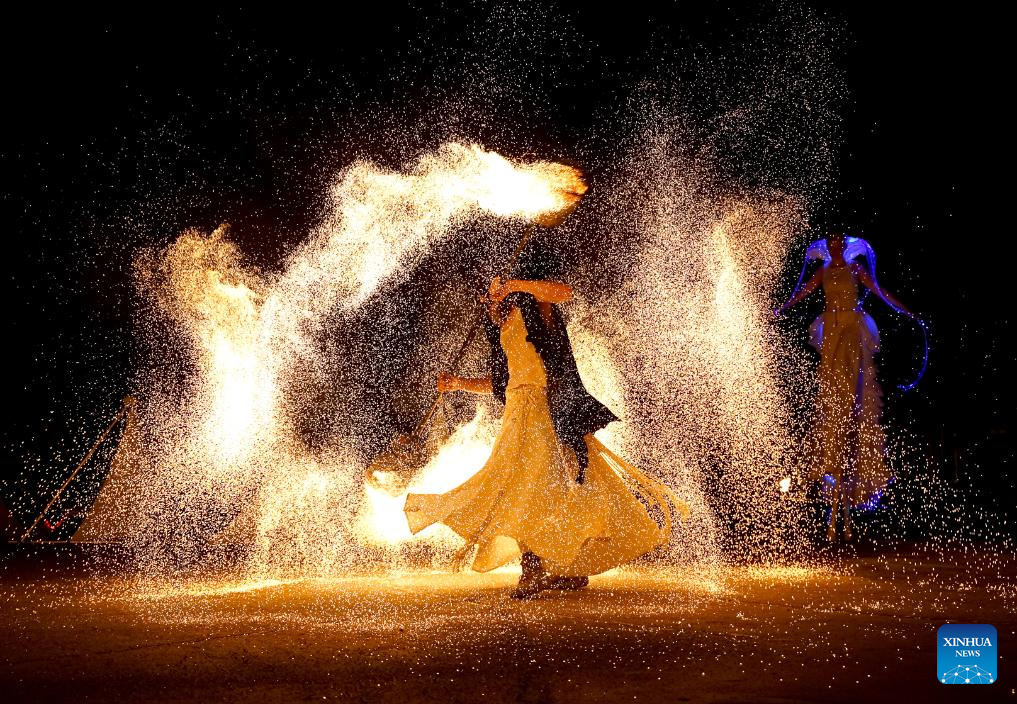 Artists perform on the opening day of the Letni Letna festival, an international festival of contemporary circus and theater, in Prague, the Czech Republic, Aug. 13, 2025. (Photo by Dana Kesnerova/Xinhua)