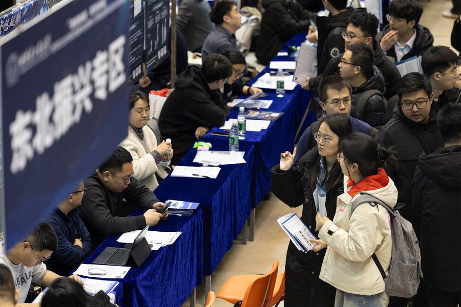 China has set a target for a surveyed urban unemployment rate of around 5.5 percent in 2025 and aims to create over 12 million new urban jobs within the year. ■